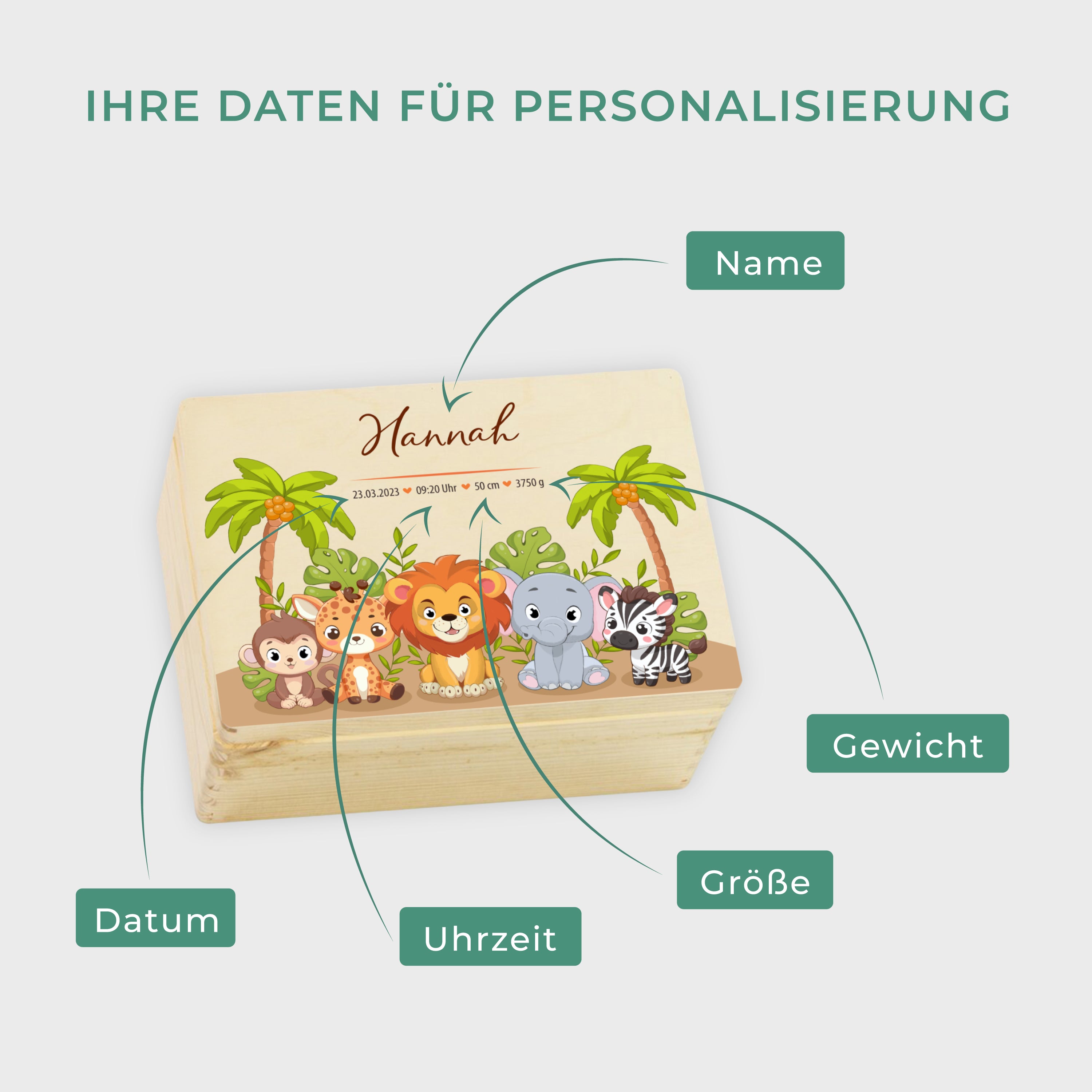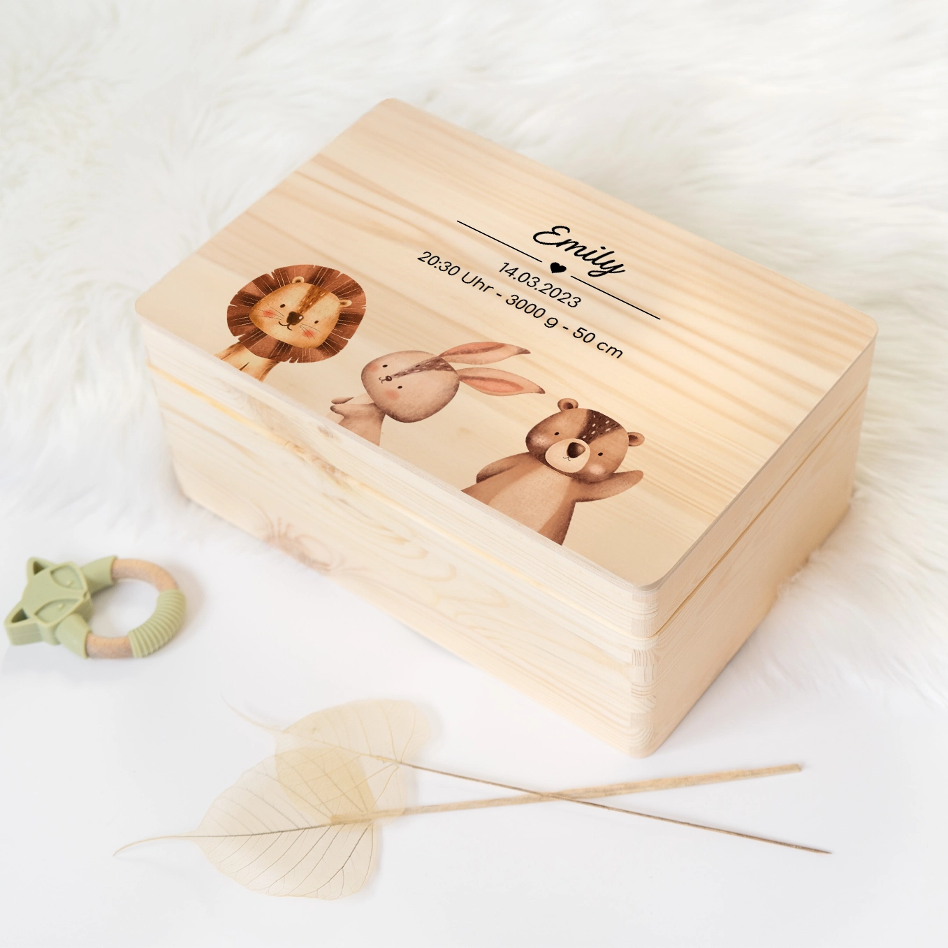 Willst du die schönsten Baby-Erinnerungen für immer bewahren? Diese personalisierte Erinnerungsbox von LARIFEE ist genau das Richtige! Mit den Maßen 40x30x23cm bietet sie jede Menge Platz für erste Strampler, Spielsachen, Fotos und andere Schätze. Das süße Sonnenmotiv wird direkt mit GREENGUARD Gold zertifizierter Tinte aufgedruckt - garantiert ungiftig und langlebig. Aus FSC-zertifiziertem Holz gefertigt, ist die Kiste stabil und nachhaltig. Der praktische Klappdeckel mit Sicherungsband verhindert ein ungewolltes Zuklappen. Perfekt als Geschenk zur Geburt oder Taufe - einfach mit Namen und Geburtsdatum personalisieren und du hast ein einzigartiges Unikat. So werden die wichtigsten Erinnerungen an die Babyzeit sicher und stylisch aufbewahrt. Ein Begleiter für die ganze Kindheit!