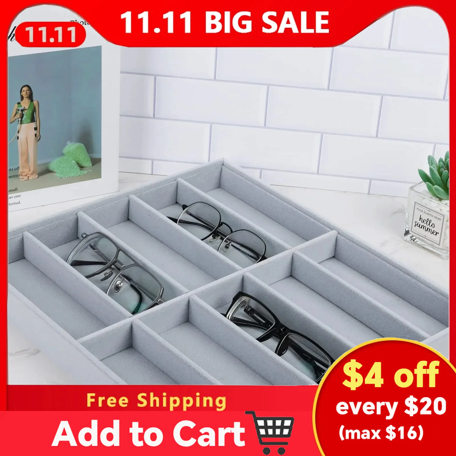 Endlich Ordnung im Brillen-Chaos! Dieser stylische Organizer hat Platz für bis zu 8 Sonnenbrillen - oder alternativ für Uhren und Schmuck. Das weiche Samtfutter schützt vor Kratzern und das stapelbare Design spart mega Platz. Mit 35×24×4cm passt er super auf die Kommode oder ins Bad. Sieht nicht nur praktisch aus, sondern ist auch ein echter Hingucker. Einfach die Lieblingsbrillen reinlegen und immer alles griffbereit haben!