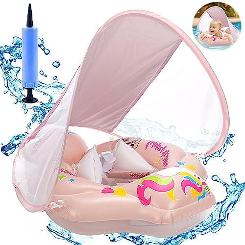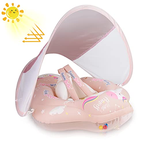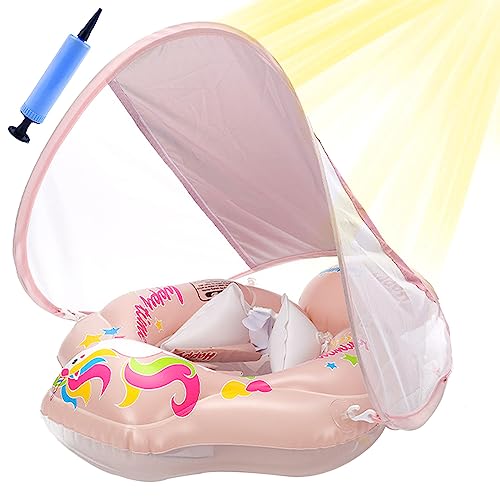 ACTOYS Baby Schwimmring Mit Sonnendach - Einhorn & Dino Design Für 6-36 Monate