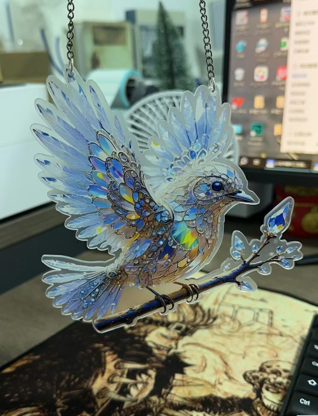 2 Stück Himmelsblaue Vogel Ornamente - Sonnenfänger Deko Für Fenster & Garten