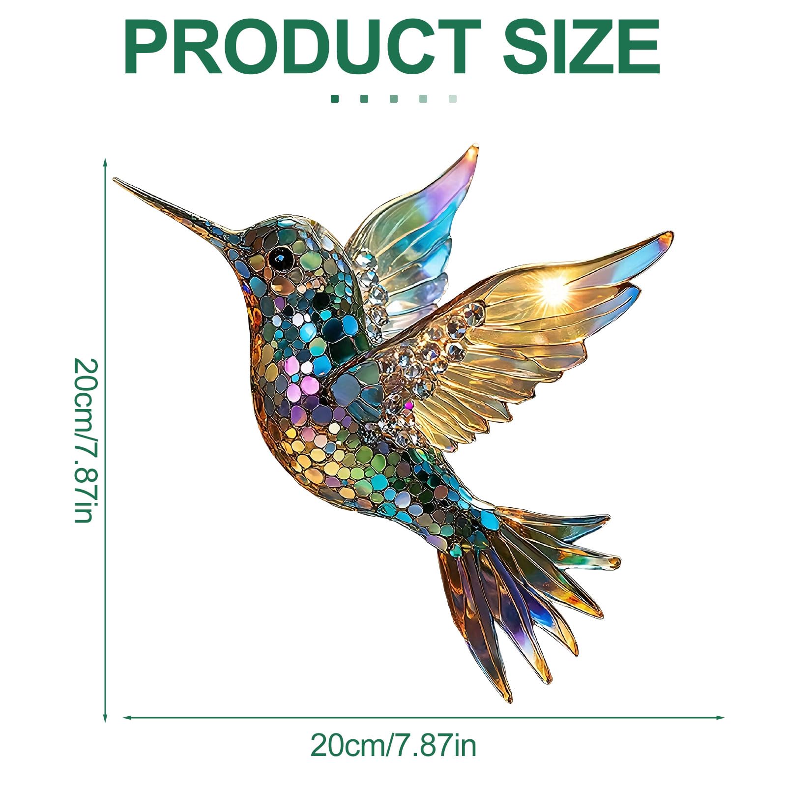 Bring Farbe in dein Zuhause mit diesen wunderschönen Kolibri-Sonnenfängern! Das Set enthält 2 verschiedene Größen (20cm und 18.5cm) aus hochwertigem Acryl, das nicht so leicht bricht wie Glas. Einfach mit der beiliegenden Schnur ans Fenster hängen und staunen, wie das Sonnenlicht die bunten Farben zum Leuchten bringt! Perfekt für Wohnzimmer, Schlafzimmer oder Küche - aber auch im Garten sehen die Kolibris einfach bezaubernd aus. Tipp: Vor dem Aufhängen die Schutzfolie abziehen, dann strahlen die Farben richtig! Ein tolles Geschenk für Naturliebhaber oder alle, die ihr Zuhause mit etwas Besonderem schmücken wollen.