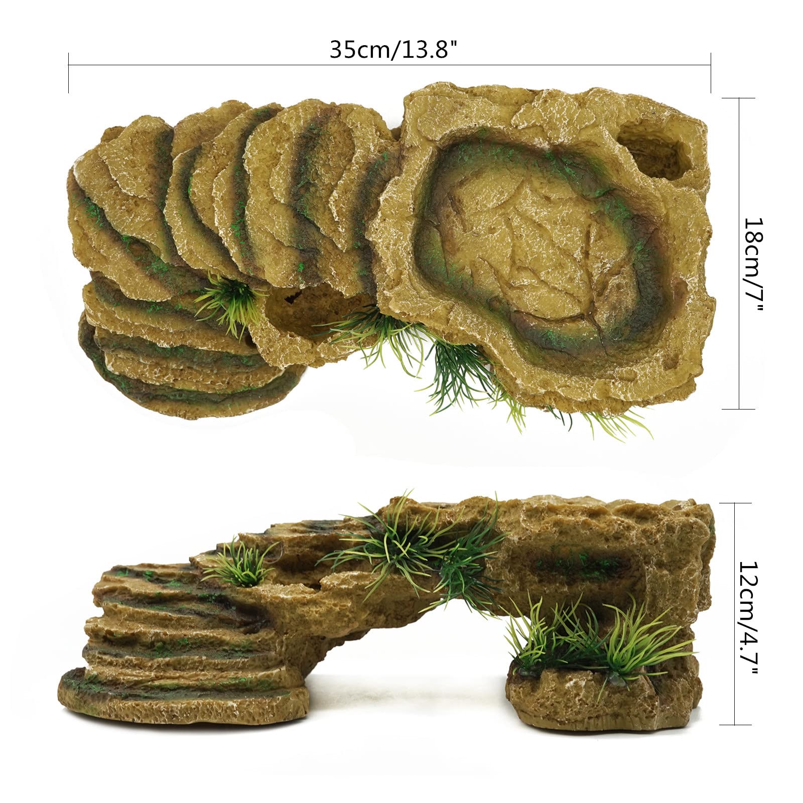 Diese süße Schildkröten-Terrasse von Hohopeti ist der perfekte Sonnenplatz für deine Wasserschildkröten! Aus hochwertigem Harz in Khaki-Farbe, mit den Maßen 27,5x13,5x9cm. Die Rampe ist super einfach zu erklimmen - selbst für kleine Schildkröten kein Problem. Sie dient nicht nur als Sonnenplatz, sondern auch als sicheres Versteck für deine Reptilien. Das frische Farbdesign ist schmutzabweisend und langlebig - hält ewig! Perfekt fürs Schildkrötenbecken, Aquarium oder Terrarium. Deine Haustiere können sich hier verstecken, spielen oder einfach nur entspannen. Die sanfte Steigung ist ideal zum Klettern und sorgt für Privatsphäre und Gesundheit deiner Schildkröten. Ein wunderbares Geschenk für Freunde oder Familie mit kleinen Haustieren. Einfach ins Wasser stellen und deine Schildkröten werden es lieben!
