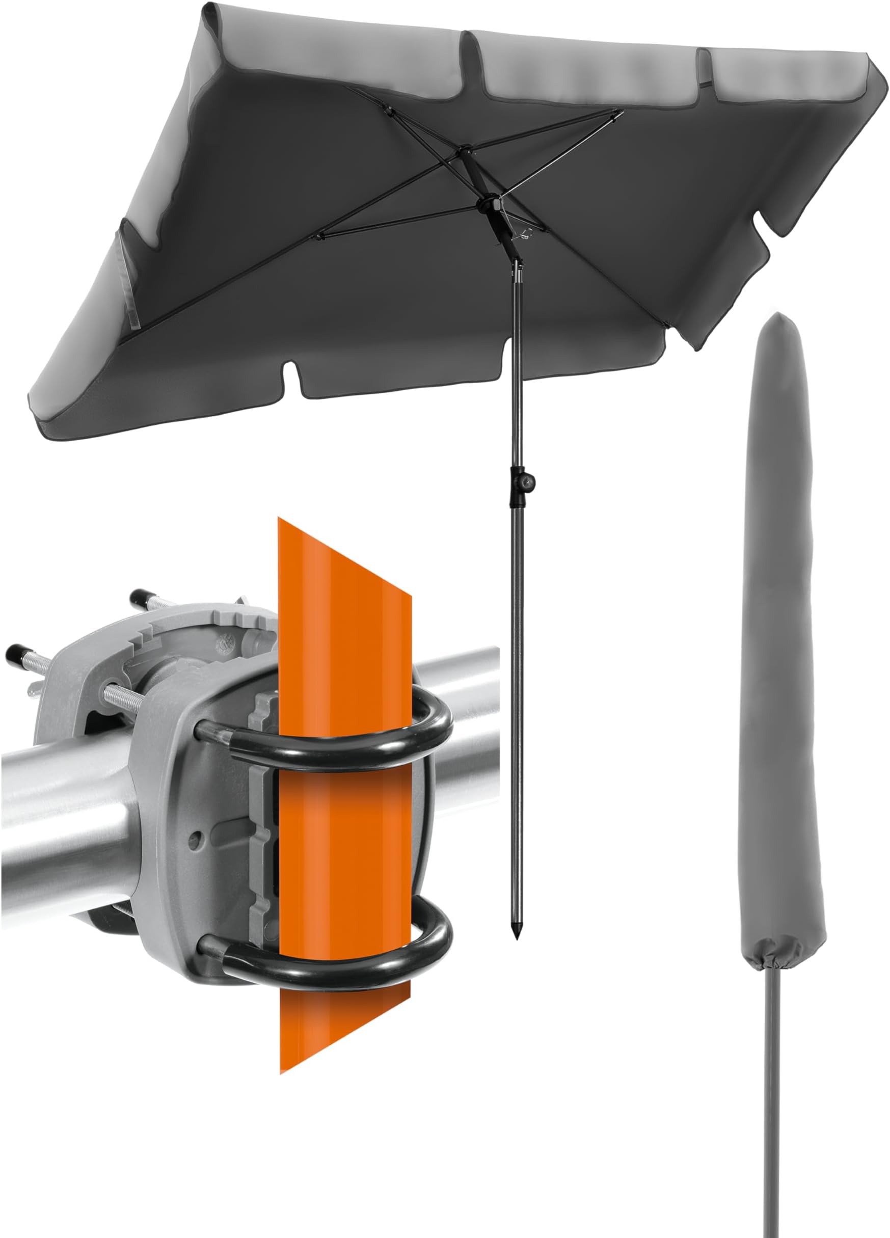 Endlich perfekter Schatten auf deinem Balkon! 🌞 Dieses 4-in-1 Set von 4smile hat wirklich alles, was du brauchst - und noch mehr!\n\nWas alles dabei ist:\n• Rechteckiger Sonnenschirm (200x125cm)\n• Stabiler Sonnenschirmständer\n• Praktische Schutzhülle\n• Windsicherung für extra Stabilität\n\nDer Clou: Der Schirm bietet UV50+-Schutz - deine Haut wird's dir danken! Und weil er rechteckig ist, passt er super in Balkonecken oder an die Wand. So nutzt du jeden Zentimeter Platz optimal aus.\n\nMontage? Total easy! Du hast zwei Optionen:\n1. Mit der Halterung am Geländer befestigen\n2. Oder einfach im Ständer platzieren - perfekt wenn du nicht bohren willst\n\nBei Wind mach dir keine Sorgen - die Windsicherung hält auch bei stärkeren Böen stand. Der Schirm ist bis 45° neigbar und in der Höhe von 150-230 cm verstellbar. So findest du immer den perfekten Winkel für den Schatten.\n\nDas Material ist absolut witterungsbeständig und die Farben bleichen nicht so schnell aus. Nach der Saison einfach die Schutzhülle drüber - und schon ist dein Schirm fürs nächste Jahr geschützt.\n\nOb fürs Frühstück auf dem Balkon, entspannte Nachmittage mit einem Buch oder gemütliche Abende mit Freunden - mit diesem Set wird dein Balkon zur echten Wohlfühloase! Und das Beste: Alles aus einem Guss, keine komplizierte Zusammenstellung einzelner Teile.\n\nEinfach auspacken, aufbauen und den Sommer genießen - mehr musst du nicht tun! 😎
