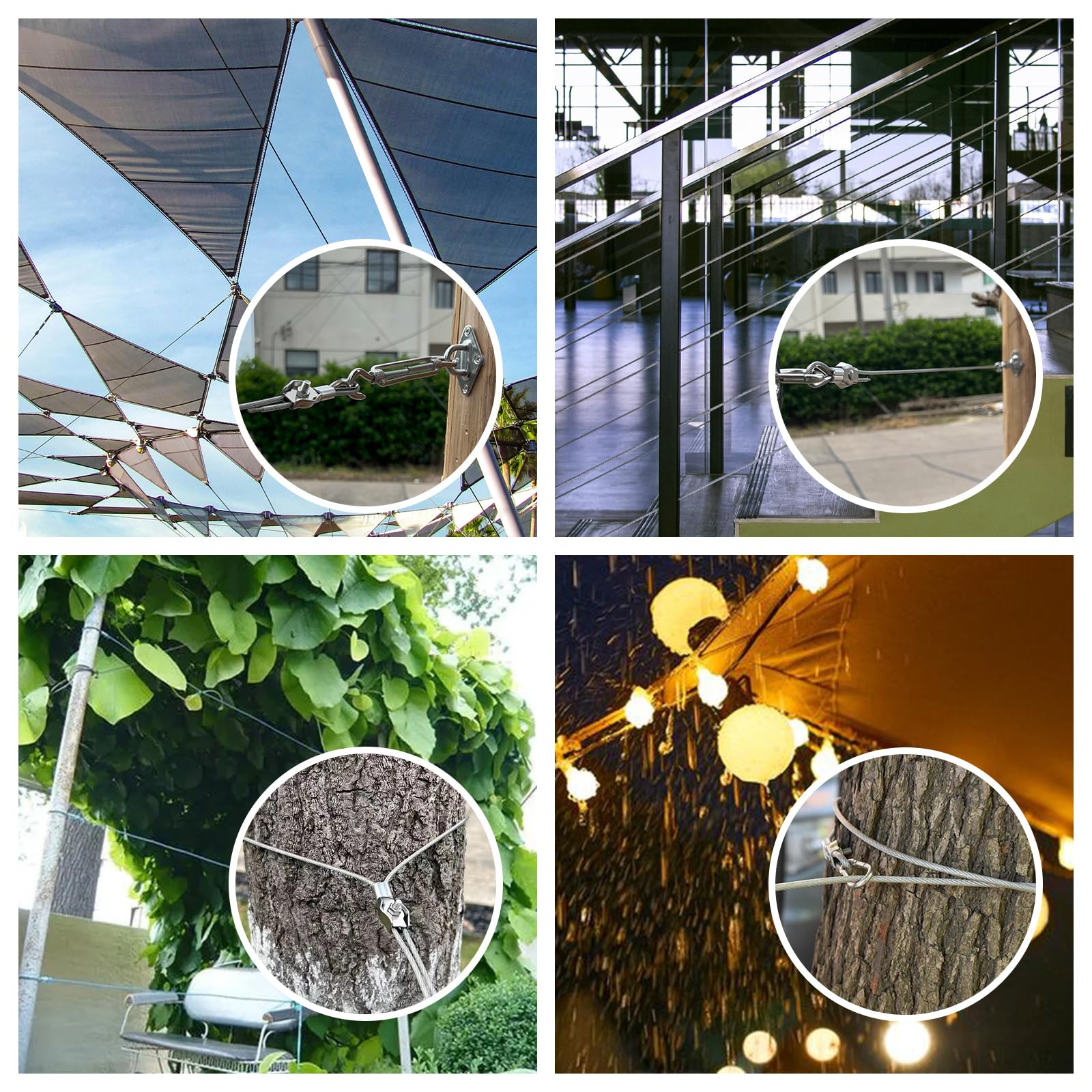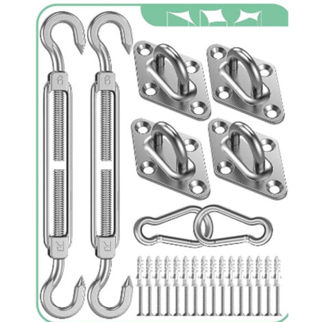 Angooni Sonnensegel Hardware-Kit | 67 Teile Edelstahl | Mit Winden & Drahtseil
