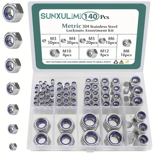 Für alle Heimwerker und Profis: Dieses riesige Sortiment mit 220 Sicherungsmuttern ist ein echter Alleskönner! Enthalten sind alle gängigen Größen: M3 (70 Stück), M4 (60 Stück), M5 (40 Stück), M6 (30 Stück) und M8 (20 Stück). Alle Muttern sind aus robustem 304 Edelstahl gefertigt - rostfrei und langlebig! Das besondere Feature: Der Nylon-Einsatz verhindert, dass sich die Muttern von alleine lösen. Perfekt also für alles, was vibrationen ausgesetzt ist. Ob Möbelmontage, Fahrradreparatur, Maschinenbau oder kleine Projekte in der Werkstatt - mit diesem Set bist du für jede Situation gewappnet. Die Muttern entsprechen der DIN 985 Norm und sind silberfarben. Super praktisch: Alles ist ordentlich in einer Aufbewahrungsbox sortiert, sodass du immer schnell findest, was du brauchst. Nie wieder suchen! Ein Must-have für jede Werkstatt - ob Hobby oder Profi.