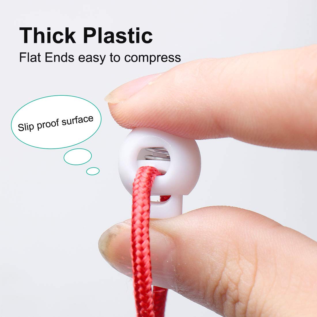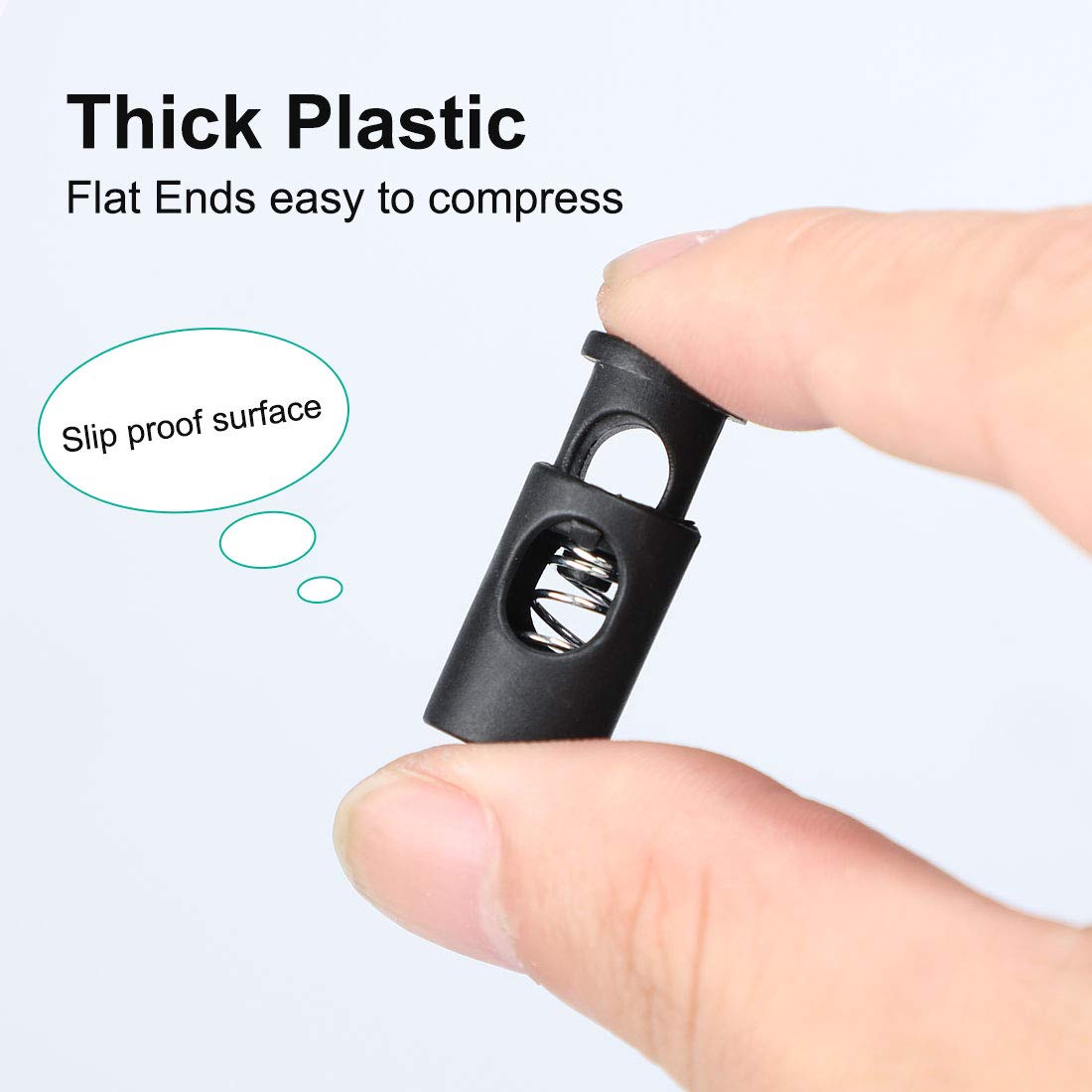 Nie mehr lose Kordeln! Diese 6 praktischen Kordelstopper aus Kunststoff (24x12x8mm) halten deine Kordeln an Jacken, Hosen, Rucksäcken und Taschen sicher fest. Einfach durch die 5x3,5mm Löcher fädeln und zusammendrücken - die Metallfeder sorgt für sicheren Halt. Auch für Schnürsenkel, Zelte oder Sportbekleidung geeignet. Leicht, langlebig und in schwarz erhältlich. Organisiere deine Kordeln mühelos!