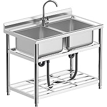 Profis aufgepasst! Dieser Spültisch von LKHDONG ist ein echter Arbeitstier. Aus 201 Edelstahl, 120x50x80 cm groß - mit zwei Becken (je 39x35x17cm). Inklusive ausziehbarem Wasserhahn mit 50cm Reichweite. Tragkraft bis 100kg, also absolut stabil. Perfekt für Restaurant, Küche, Camping oder Outdoor-Events. Mit praktischer Arbeitsfläche und Ablageregal. Einfach montieren und schon kann's losgehen mit dem Spülen. Hält ewig und sieht dabei noch professionell aus.