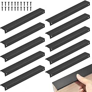Suchst du dezente Griffe die trotzdem gut in der Hand liegen? Diese versteckten Schrankgriffe in mattschwarz sind perfekt für moderne Küchen und Möbel! Aus robustem Weltraumaluminium gefertigt - das ist besonders leicht und langlebig. Mit 80mm Länge ideal für Schubladen und Schranktüren. Die abgerundeten Ecken verhindern lästige Kratzer an Händen und Kleidung. Einfach zu montieren: Schrauben sind bereits im Lieferumfang enthalten. Sieht nicht nur edel aus, sondern rostet auch nicht - perfekt für Feuchträume wie Bad oder Küche. 10 Stück im Set, damit du alle Möbel einheitlich ausstatten kannst.