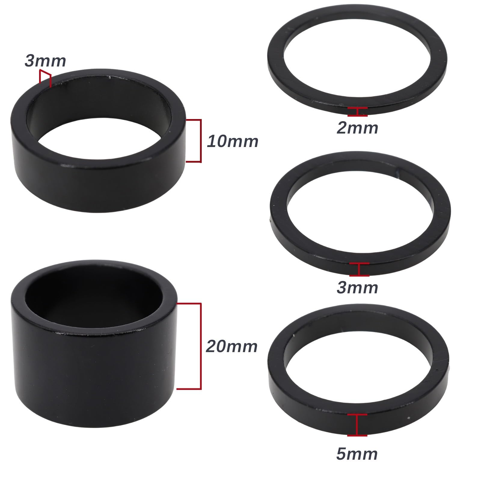 Dein Lenker sitzt nicht perfekt? Kein Problem mit diesen 5 Aluminium-Spacern von DONGLING! Im Set mit 2, 3, 5, 10 und 20mm Stärken findest du garantiert die richtige Höhe für deinen Style. Passend für 1 Zoll (25,4mm) Vorbauten an MTB, Rennrad oder Citybike. Leicht aber stabil, glatte Schnittkanten - made to last! Einfach zwischen Vorbau und Gabel legen und die optimale Sitzposition genießen. Nur 34g Gesamtgewicht - dein Bike merkt's kaum! Für mehr Komfort auf jeder Tour.