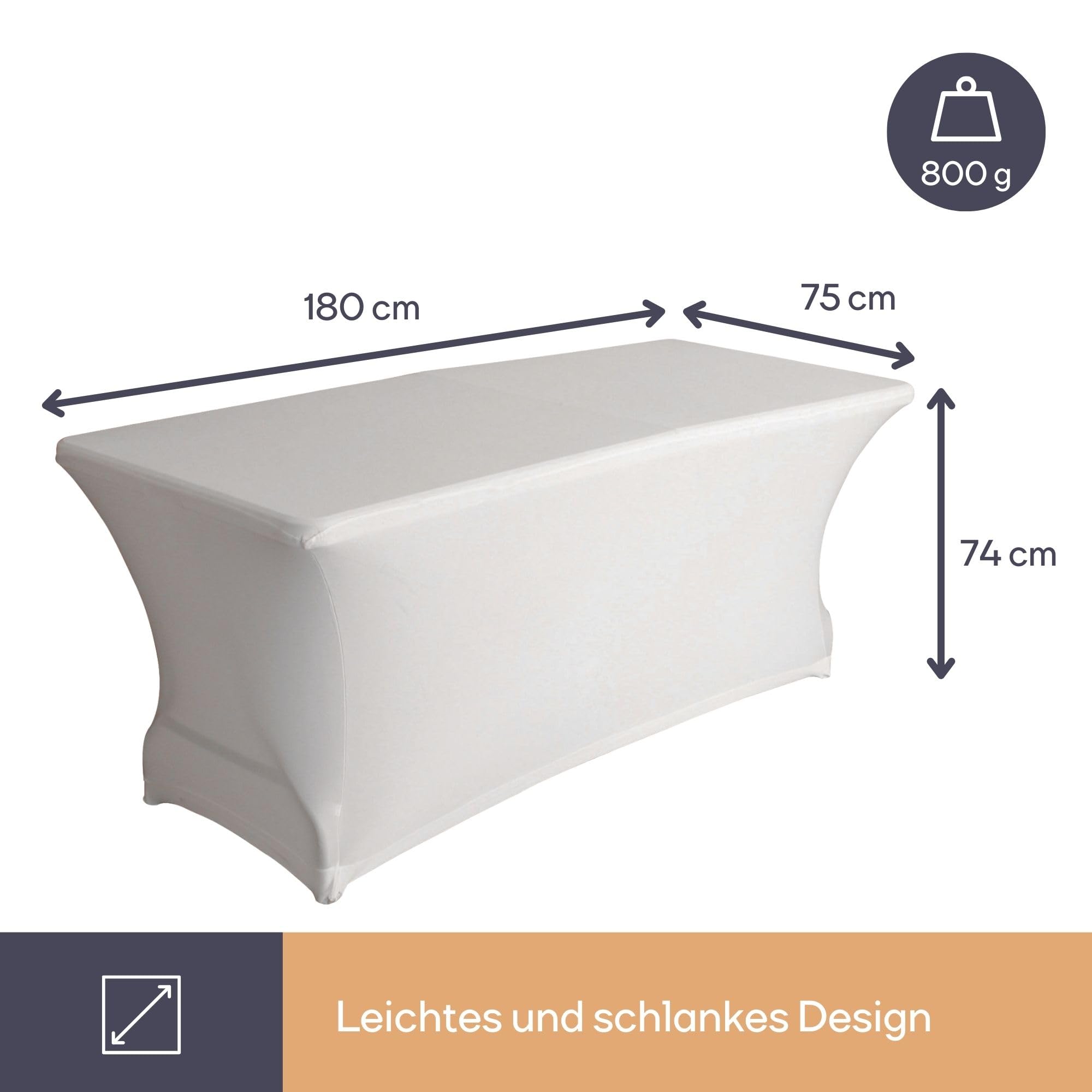 Mach deinen Tisch zum Hingucker! Diese weiße Spandex-Tischdecke sieht nicht nur super elegant aus, sie ist auch mega praktisch! Aus elastischem Polyester - zieht sich einfach über den Tisch und sitzt wie angegossen! Mit 4 elastischen Fußtaschen - rutscht nicht mal bei Wind! Perfekt für Hochzeiten, Geburtstage, Messen oder einfach für die Terrasse. Maße: 180x75x74 cm - passt auf die meisten rechteckigen Tische. Waschbar bei 40°C - knitterfrei und schnell trocknend! Schützt deinen Tisch vor Kratzern und Flecken - und verwandelt sogar alte Tische in echte Eyecatcher! Ob drinnen oder draußen - diese Tischdecke macht immer was her! Einfach überziehen und schon sieht's festlich aus! Perel Qualität - da weiß man was man hat!