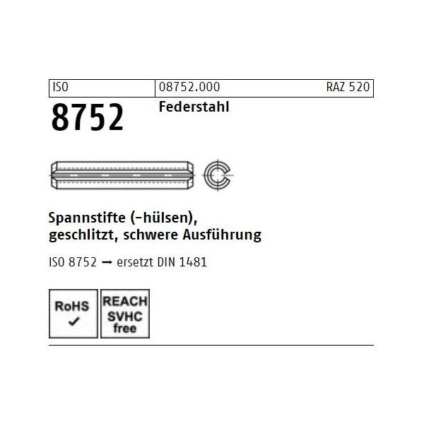 Aus Federstahl gefertigt, sind sie besonders stabil und langlebig. Die geschlitzte Ausführung in schwerer Bauweise sorgt für zuverlässigen Halt in den entsprechenden Bohrungen. Jeder Stift wiegt nur etwa 0,005 kg - leicht, aber dennoch robust.