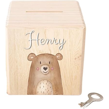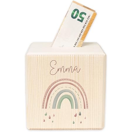 Ein ganz persönliches Geschenk mit bleibendem Wert! Diese süße Spardose aus Holz wird mit dem Namen des Kindes personalisiert - ein einzigartiges Erinnerungsstück. Mit 10x10cm kompakt genug fürs Kinderzimmer, aber groß genug für Münzen und Scheine. Der Schlüsselverschluss schützt das Ersparte vor neugierigen Händen und lehrt spielerisch den Umgang mit Geld. Hergestellt in Hamburg von einem Familienunternehmen mit viel Liebe zum Detail. Perfekt als Taufgeschenk, zur Geburt, Einschulung oder Kommunion - ein Geschenk, das wirklich von Herzen kommt und lange Freude macht!