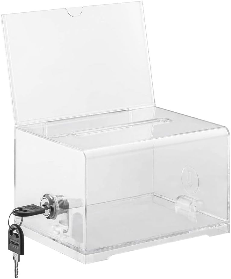 Praktische Spendenbox aus Acryl - durchsichtig, damit jeder sieht, was drin ist. Mit Schloss und Schlüssel, also sicher gegen unerwünschtes Zugreifen. Maße: 15,7 x 11,5 x 10,2 cm - nicht zu groß, nicht zu klein. Stabiler Boden, wackelt nicht rum. Aus robustem Acryl, nicht so zerbrechlich wie Glas. Perfekt für Spendenaktionen, aber auch für Visitenkarten-Sammeln, Umfragen, Gewinnspiele oder Wahlen. Sieht seriös aus, macht was her auf Events. Hab sie für unsere Vereinsaktion verwendet - super praktisch, man sieht sofort, wie voll sie schon ist. Das Schloss funktioniert einwandfrei, Schlüssel passt. Auch als Geldbox für kleine Geschäfte geeignet. Leicht zu reinigen, Acryl wischt man einfach ab. Transparent genug, um den Inhalt zu erkennen, aber stabil genug für den Transport. Für Messen, Märkte oder im Laden - überall wo was gesammelt werden soll. Einfach vielseitig einsetzbar - nicht nur für Spenden! Auch als Aufbewahrung für Wertkarten oder Tickets. Qualität macht einen soliden Eindruck, nichts wackelt oder knarzt. Für den Preis absolut in Ordnung - vergleichbare Boxen kosten oft mehr. Einfach cleveres Teil, das man immer mal brauchen kann. Sieht professionell aus, ohne teuer zu sein. Wenn du was Sicheres und Durchsichtiges suchst - hier wirst du fündig!