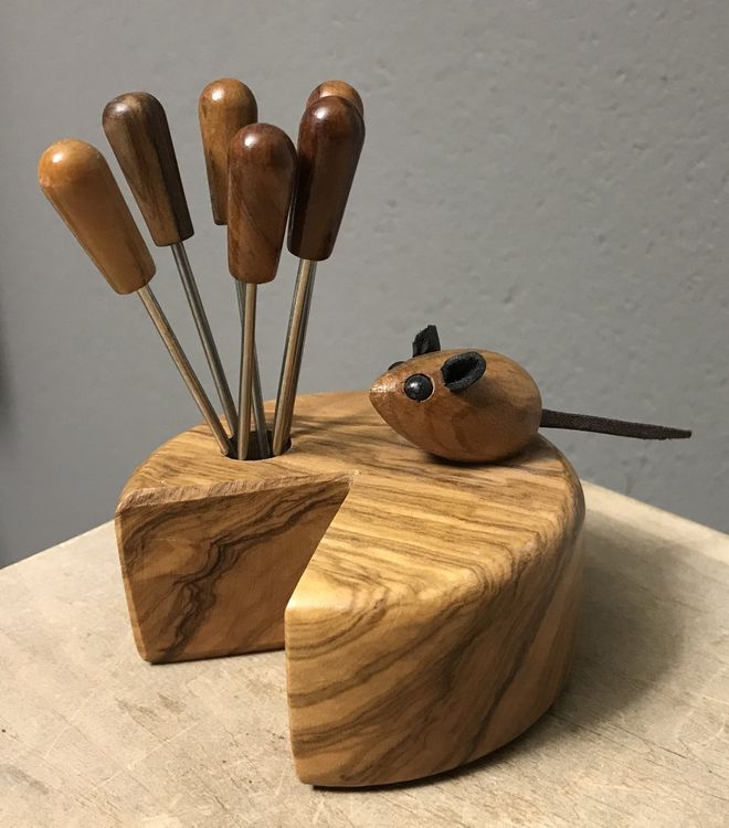 Olivenholzfass Mit 6 Spießen - Charcuterie Picker Für Käse & Oliven Aus Spanien