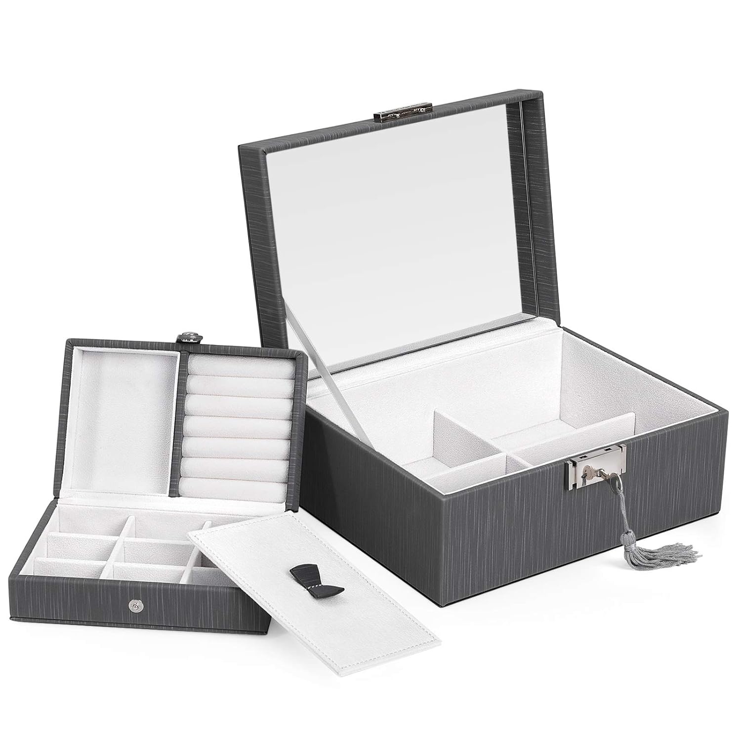 Samt Schmuckkoffer Mit Spiegel - Doppellagiger Organizer Für Reisen