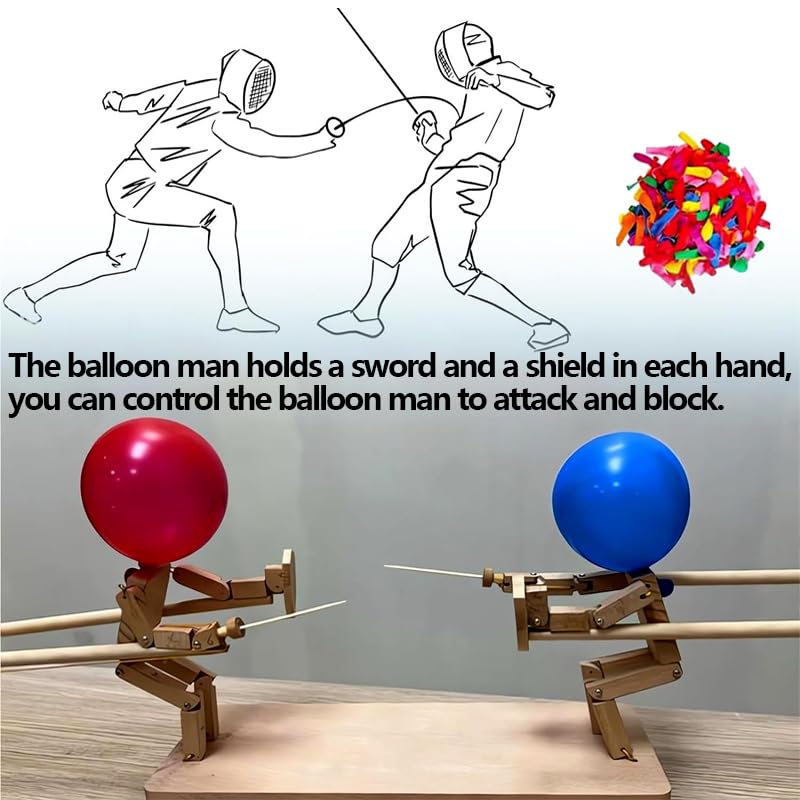 Spielefans, dieses Headshot WoodBots Spiel ist der absolute Party-Hit 2025! Zwei handgefertigte Bambus-Figuren duellieren sich in epischen Ballon-Schlachten. Mit Schnelllade-Mechanismus für actionreiche Runden - einfach Faden ziehen und weiter geht's! Das Spielbrett mit Saugnapf-Befestigung steht bombenfest. Im Lieferumfang: 2 einzigartige Bot-Designs, Spielbrett und 100 Ballons für stundenlangen Spaß. Wichtig: Immer Schutzbrille tragen! Perfekt für Familienabende, Partys oder gemütliche Spieleabende. Einfache Regeln, aber taktisch anspruchsvoll - für Kinder und Erwachsene gleichermaßen begeisternd!