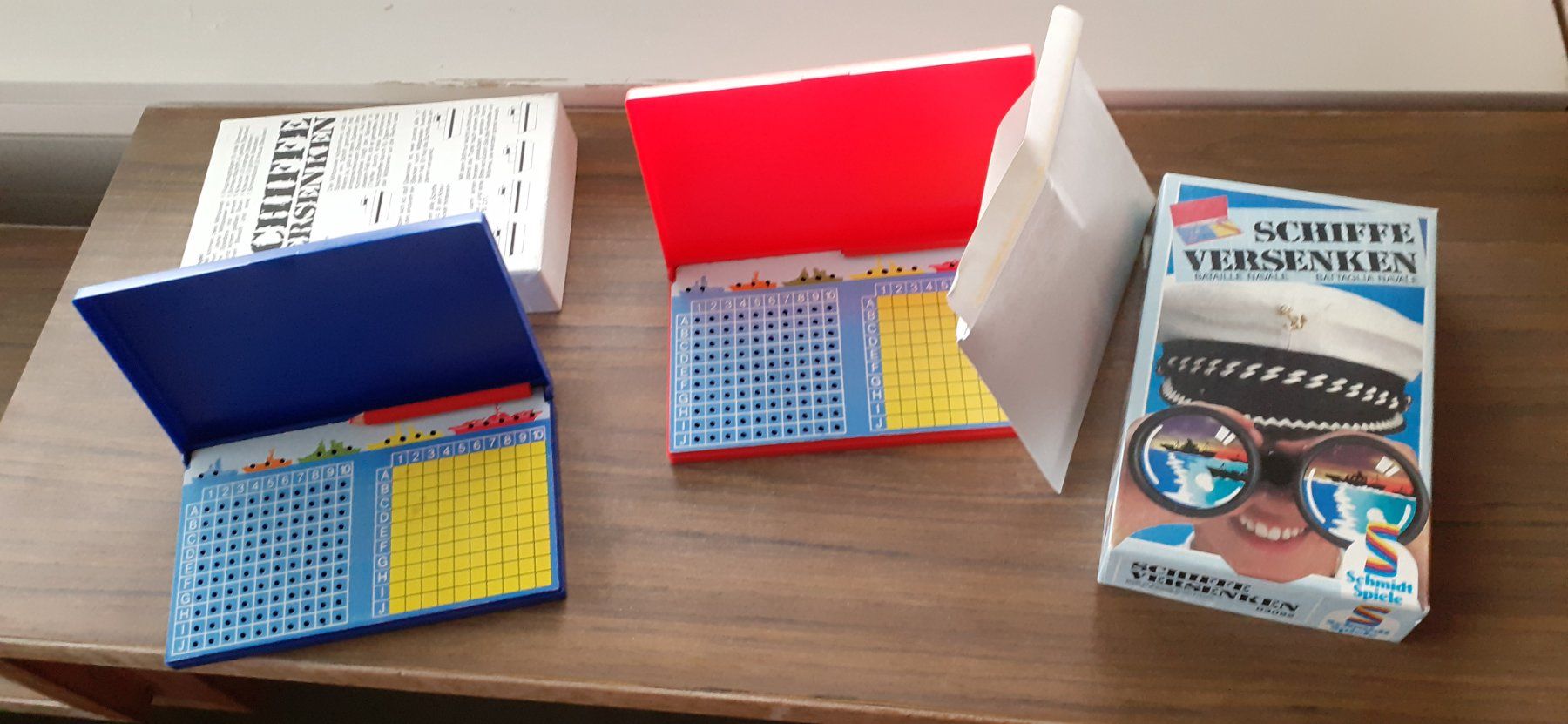 Einfach die Schiffe auf dem verdeckten Feld platzieren und dann abwechselnd Koordinaten rufen: \B4!\ - \Treffer!\ oder \Wasser!\. Spannung pur, bis das letzte Schiff versenkt ist! Perfekt für Kinder und Erwachsene gleichermaßen.