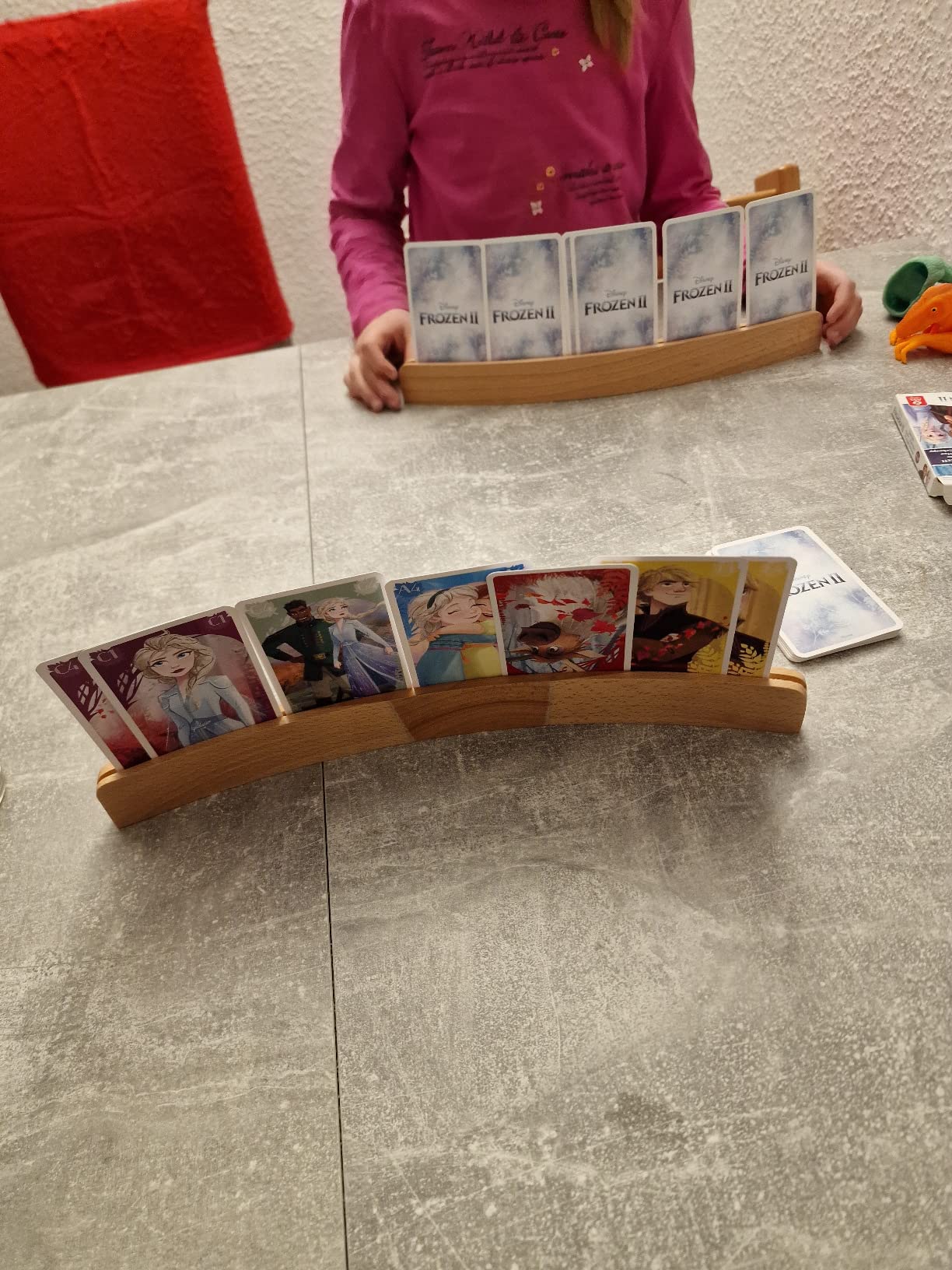 Endlich freie Hände beim Kartenspielen! Diese 2 praktischen Kartenhalter aus Massivholz sind ideal für Pokerabende, Bridge-Runden oder Uno-Spiele. Jeder Halter ist ca. 33 cm lang und kann bis zu 15 Karten aufnehmen. Perfekt für Senioren, Menschen mit Arthritis oder kleine Kinder, deren Hände noch nicht groß genug für viele Karten sind. Die gebogene Form gibt guten Halt und die kompakte Bauweise nimmt kaum Platz auf dem Tisch ein. Aus hartem, langlebigem Holz gefertigt - nichts verbiegt oder bricht so schnell. Übrigens: Super auch zum Organisieren von Visitenkarten, Tickets oder Rechnungen!