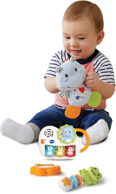 Ein süßes Nilpferd, das dein Baby durch die anstrengende Zahnungszeit begleitet! Das Vtech Nuckelnilpferd ist der perfekte Begleiter für die Kleinen von 0-24 Monaten.