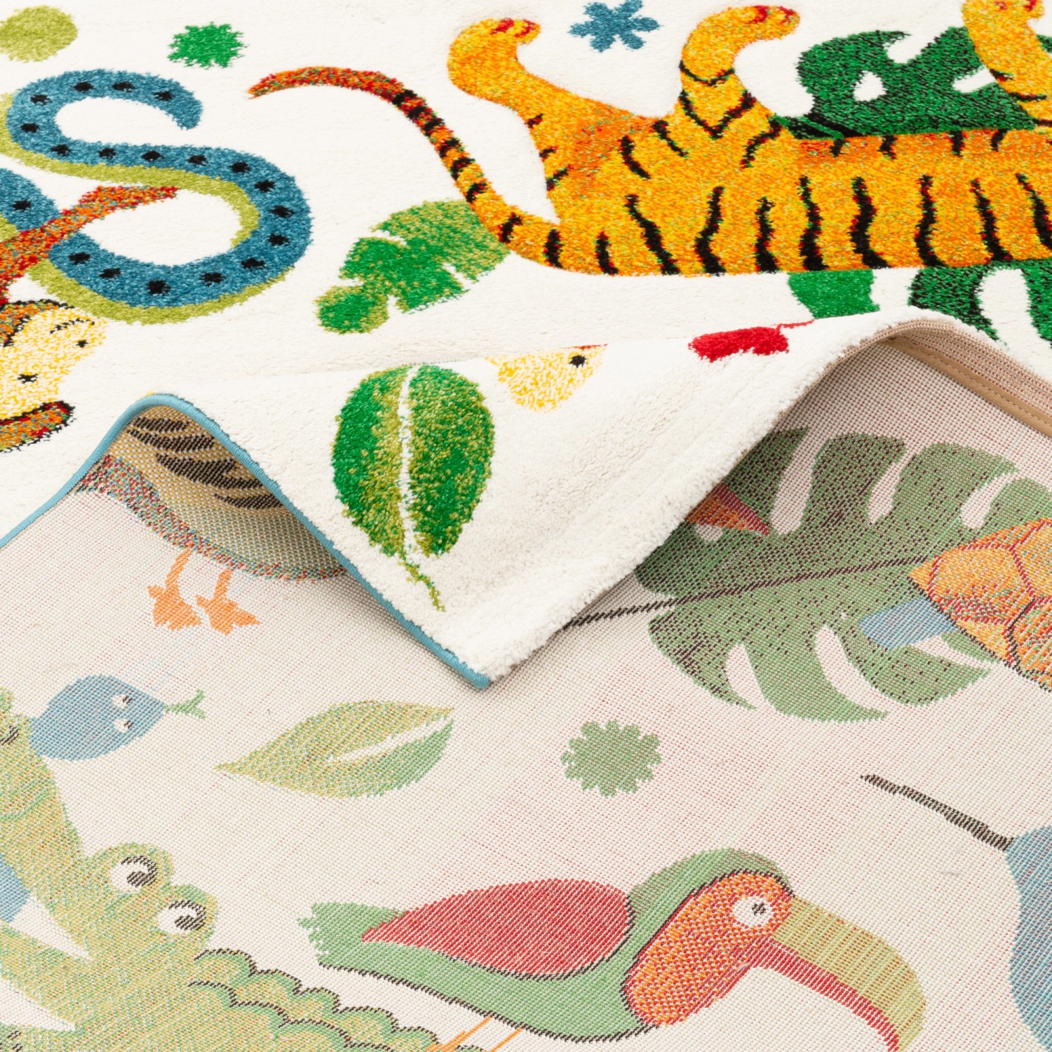 Der Maui Kids Village Teppich verwandelt jedes Kinderzimmer in eine bunte Spielwelt! Mit den lustigen Dinosaurier-Motiven und den strahlenden Farben macht das Spielen doppelt so viel Spaß. Das Besondere: Die feinen Linien sind per Handkonturenschnitt gearbeitet, was den Motiven eine plastische, dreidimensionale Optik verleiht. Der Teppich ist aus weichem Polypropylen gefertigt und hat eine Gesamthöhe von ca. 13 mm - richtig gemütlich für kleine Füße! Mit ca. 2850 gr. pro m² ist er robust genug für tägliches Toben. Und das Wichtigste: Er ist schadstoffgeprüft nach Öko-Tex Standard 100, also absolut sicher für dein Kind. Praktisch: Der Teppich ist parkett- und laminatschonend, für Fußbodenheizung geeignet und die Farben bleiben lange schön. Die Reinigung ist super einfach - normal absaugen reicht aus. Hergestellt wird er übrigens in einem BSCI-zertifizierten Betrieb, was für faire Arbeitsbedingungen steht. Ob als Spielunterlage, zum Kuscheln oder als dekoratives Element - dieser Teppich ist ein Allrounder fürs Kinderzimmer. Deine Kleinen werden die bunten Dinos lieben! Und du hast die Gewissheit, dass dein Kind auf einer sicheren und schadstofffreien Unterlage spielt.
