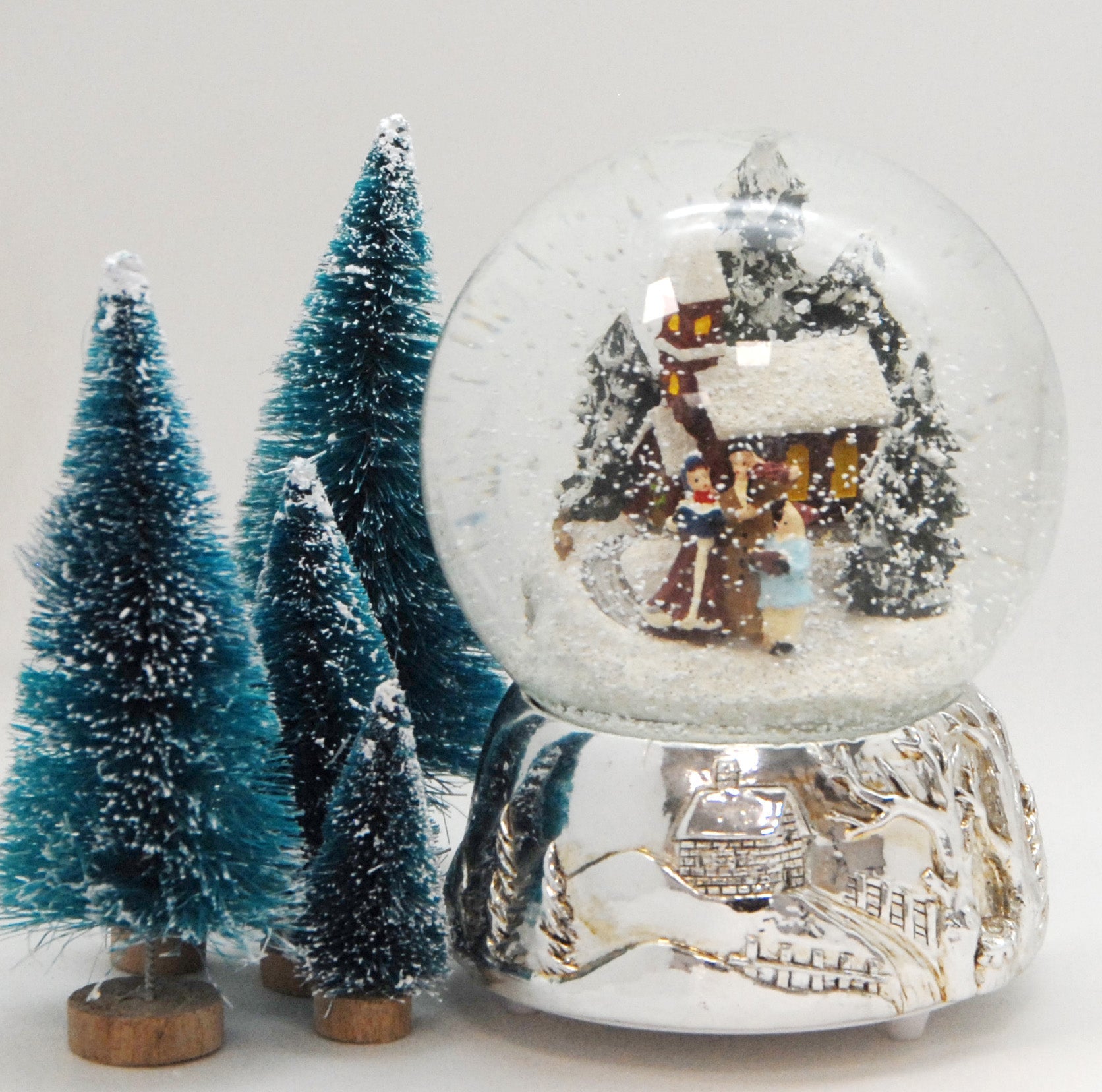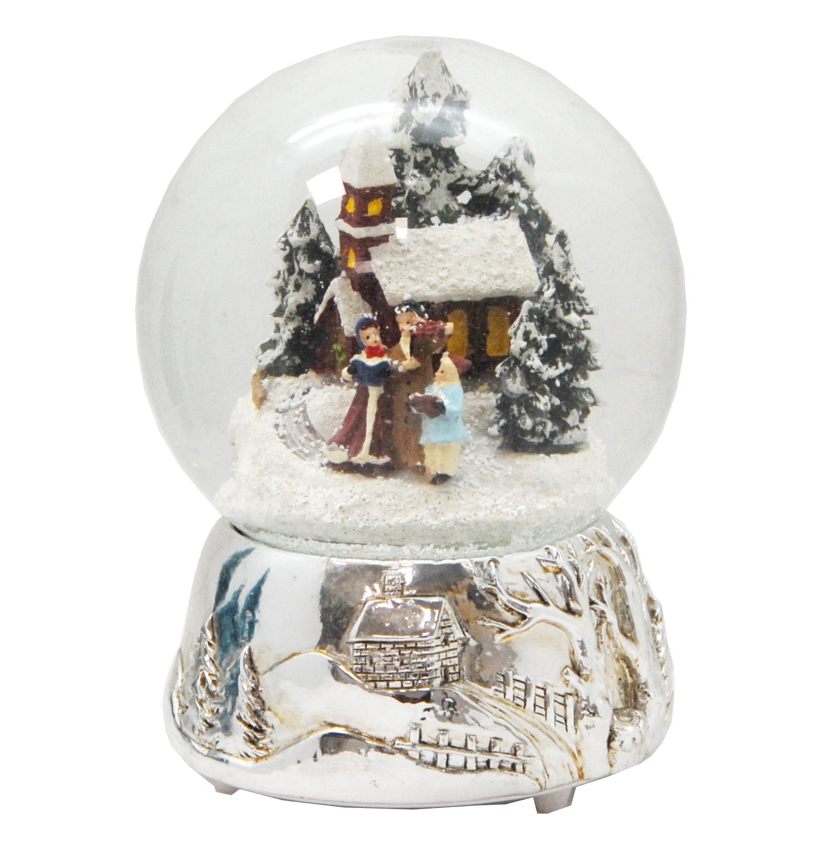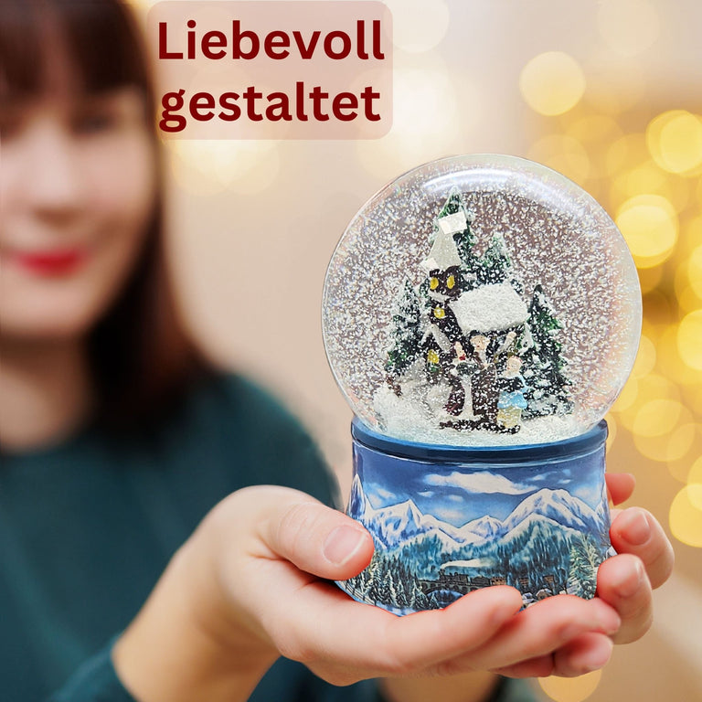 Wunderschöne Schneekugel mit romantischer Winter-Szene! Zeigt eine Familie beim Winterspaziergang vor einer Kirche - einfach bezaubernd! Mit mechanischer Spieluhr die 'Weihnachtsmelodie' spielt - nostalgisch und festlich! 100mm Durchmesser, 14cm hoch - perfekte Größe für jeden Tisch! Sockel in Zinnoptik mit feinen Reliefs - sieht aus wie antik! Mit feinem weißem Schnee der sanft herabfällt - magisch anzusehen! Liebevoll detailliert - jedes Mal entdeckst du neue Details! Perfekt für Weihnachtsdekoration, als Geschenk oder einfach zur gemütlichen Stimmung! Macht jedes Zuhause weihnachtlicher - einfach schütteln und träumen! Ein zeitloser Klassiker der Generationen begeistert!