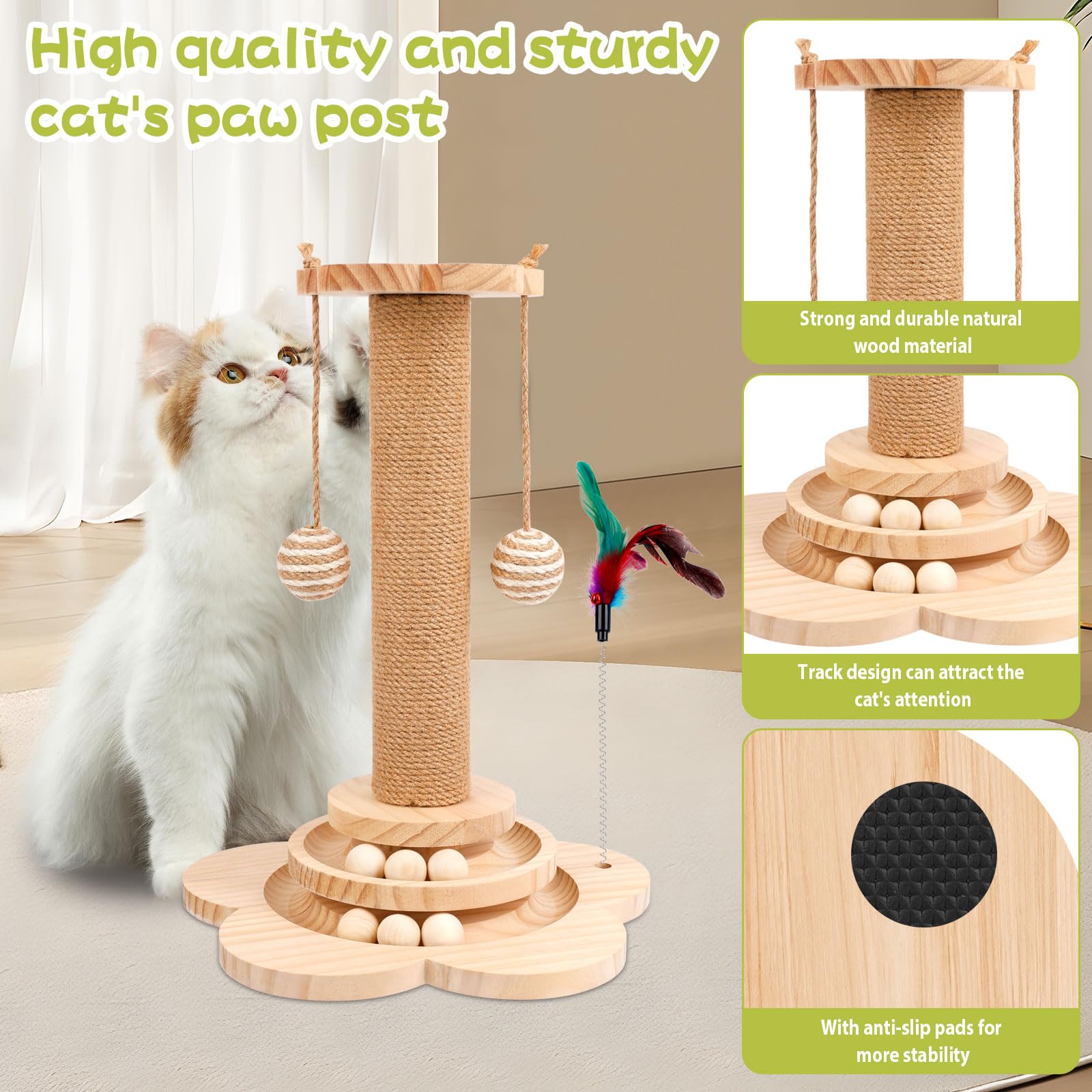 WishesMar Katzen Spielzeug Aus Holz - 3-Bahnen Kugelturm Mit Bällen Für Aktive Katzen & Kätzchen