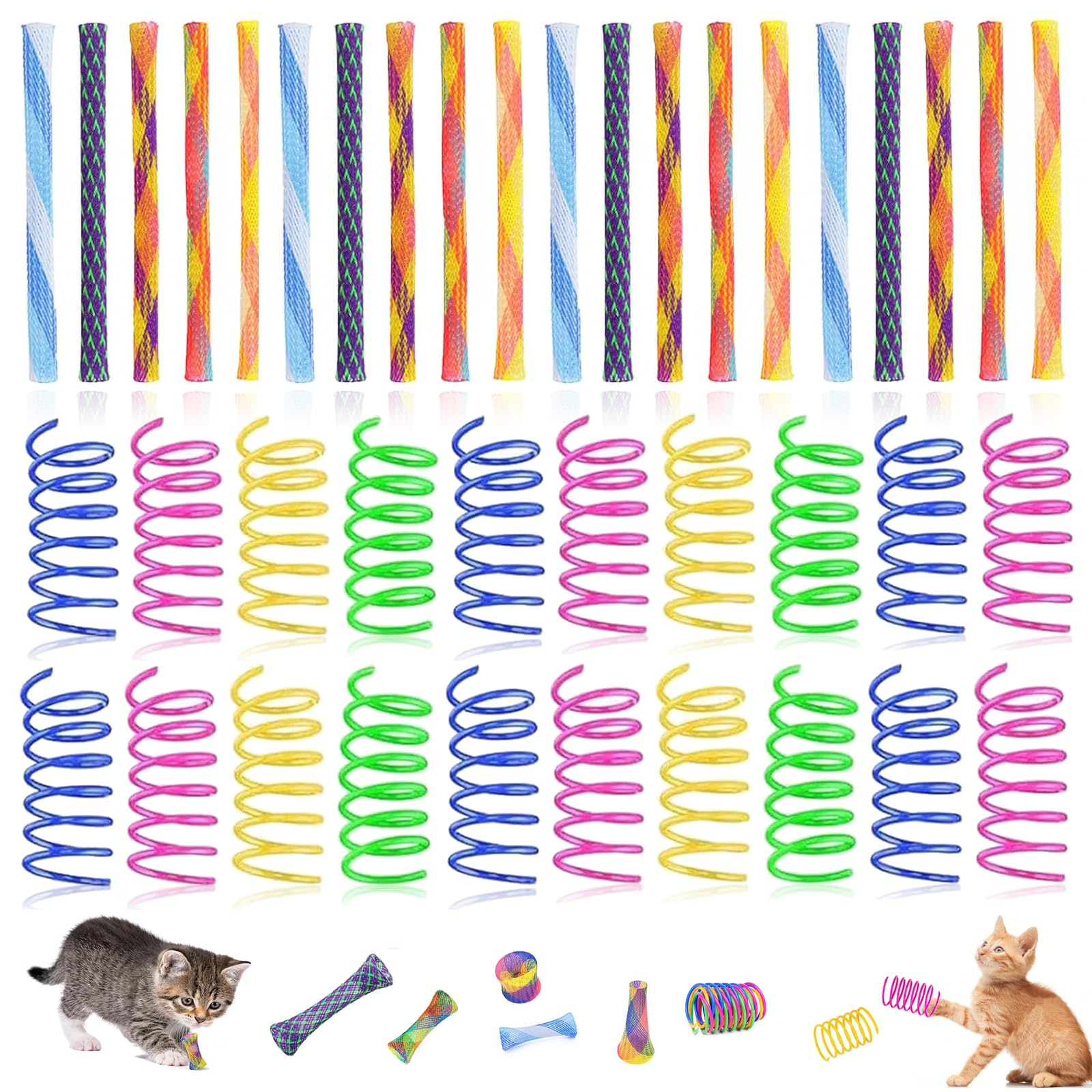 Hey Katzenbesitzer! Diese 40 bunten Spiralfedern machen jede Katze verrückt! Aus weichem PVC, schonend für Zähne. Jede Feder ca. 4,5 cm lang. Die leuchtenden Farben wecken den Jagdinstinkt, die Sprungeigenschaften sorgen für Action. Perfekt für gemeinsames Spielen oder alleine. Trainiert Beweglichkeit und hält fit. Einfach werfen und zuschauen, wie deine Katze begeistert ist. Der ideale Zeitvertreib für Stubentiger!