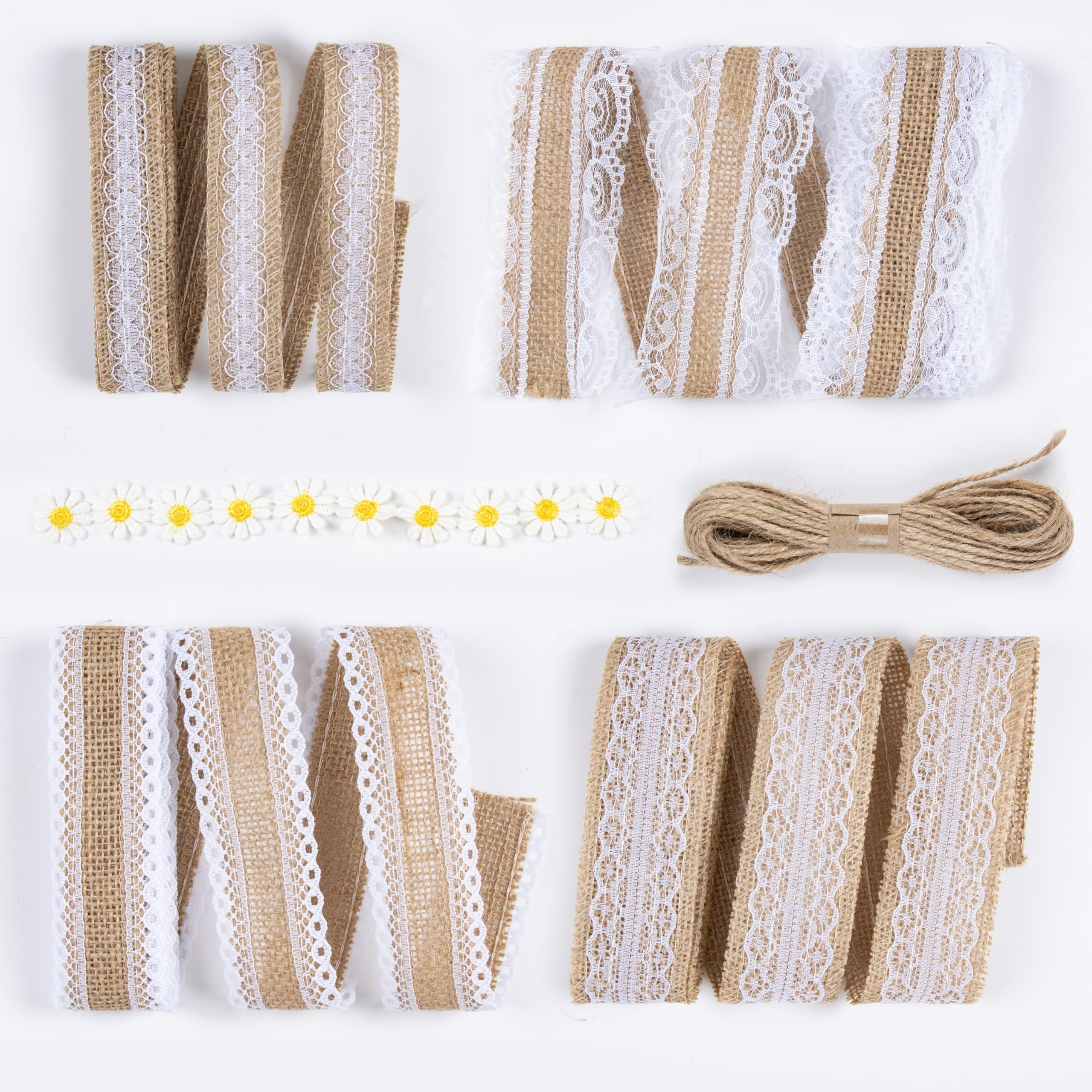 Wunderschönes Juteband mit zarter Spitze für deine kreativen Projekte! Dieses 3-Rollen-Set in natürlicher Jute-Farbe und weißer Spitze verleiht jedem DIY-Vorhaben einen vintage Charme. Perfekt für Geschenkverpackungen, Hochzeitsdeko, Blumenarrangements oder Scrapbooking. Das Band ist 1 Meter lang und lässt sich einfach auf die benötigte Länge zuschneiden. Aus natürlichen, umweltfreundlichen Materialien - fühlt sich super an und sieht einfach klasse aus! Ob für rustikale Hochzeitssträuße, Weihnachtsdekoration oder hübsche Geschenkanhänger - dieses Band macht alles gleich viel edler. Einfach nähen oder kleben - die großen Weblöcher machen die Verarbeitung super einfach. Ein echter Allrounder für alle Bastelfans!