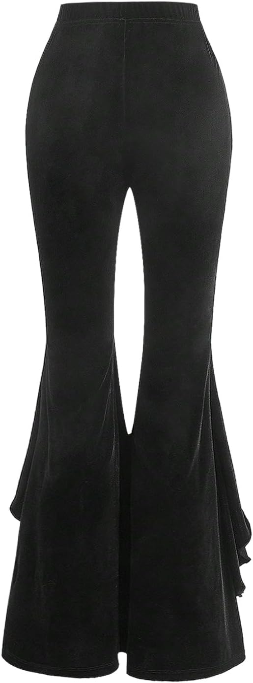 Gothic Schlaghose Damen Mit Spitze - Festival Hose Stretch Freizeithose Y2K Style