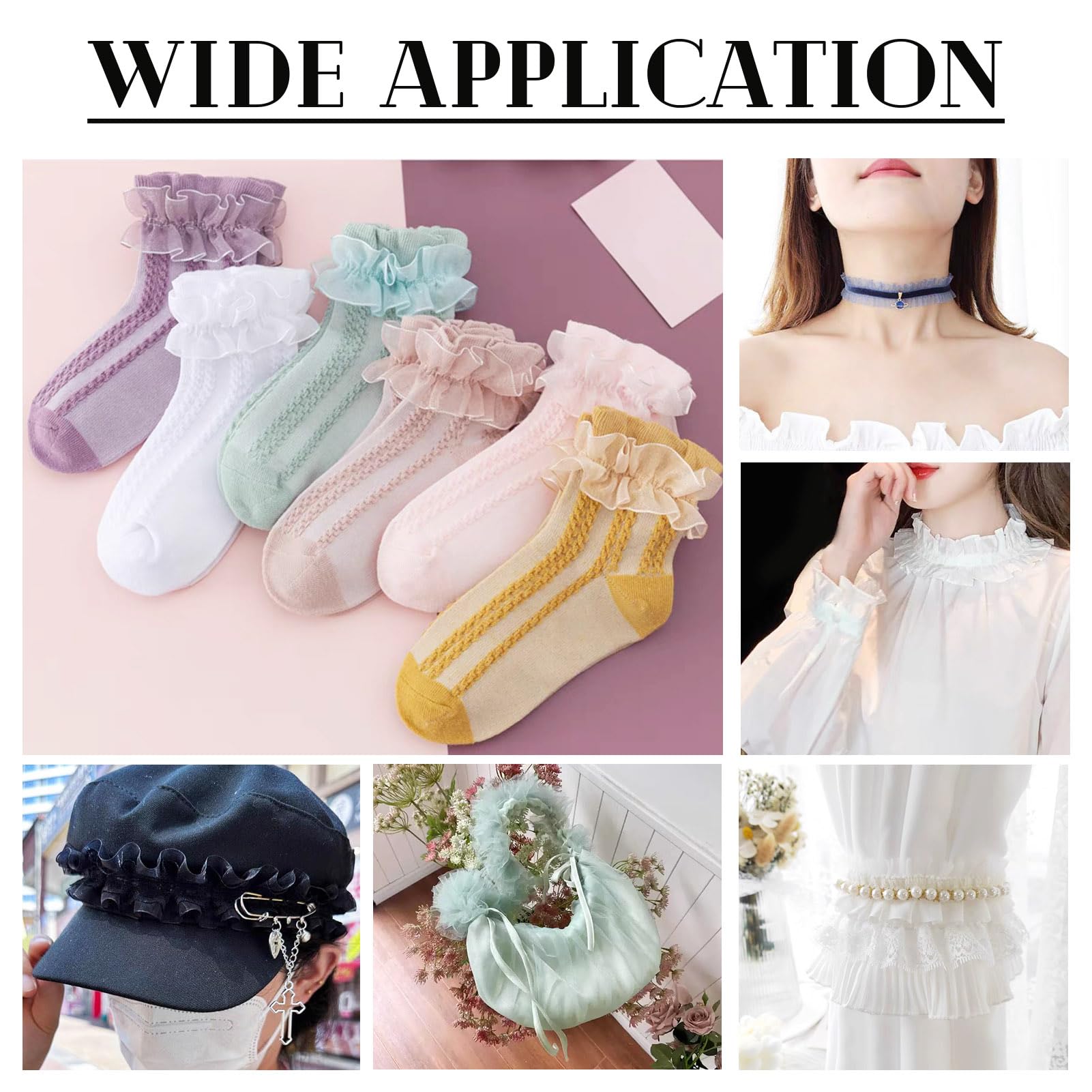 NBEADS Plissierte Spitzenborte 45m - 9 Farben Dehnbar Für Nähen & Deko
