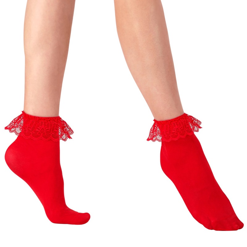 Damensöckchen Mit Spitzenrüsche - Weiße Socken Für Kostüme Gr. 35-42