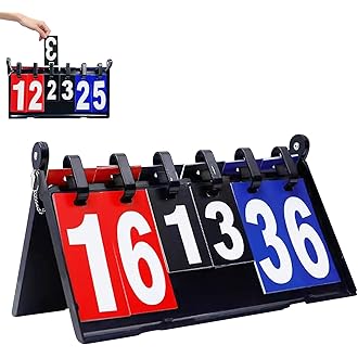 Hey, diese Ejoyous Anzeigetafel ist der absolute Game-Changer für jeden Sportevent! Mit 4 Stellen pro Seite kannst du die Punktestände von zwei Teams super übersichtlich anzeigen. Die hellen blauen und roten Tafeln machen es einfach, die Teams auseinanderzuhalten. Mit ca. 39,8 x 18,5 x 15 cm ist sie groß genug für gute Sichtbarkeit, aber noch handlich zum Transport. Aus hochwertigem Kunststoff, Eisen und Papier gefertigt, mit glatten Kanten die nicht in den Händen schneiden. Perfekt für Tischtennis, Badminton, Basketball, Volleyball oder andere Wettkämpfe. Die Zahlen lassen sich leicht umdrehen und sind von allen Seiten gut lesbar. Mit 741 Gramm Gewicht ist sie stabil steht aber nicht zu wackelig. Einfach aufstellen und schon kann das Spiel beginnen - ob im Verein, in der Schule oder beim privaten Turnier mit Freunden!
