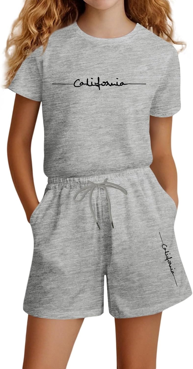 Mädchen Sportanzug 2-teilig - Baumwolle Set Mit T-Shirt & Shorts Für Sommer