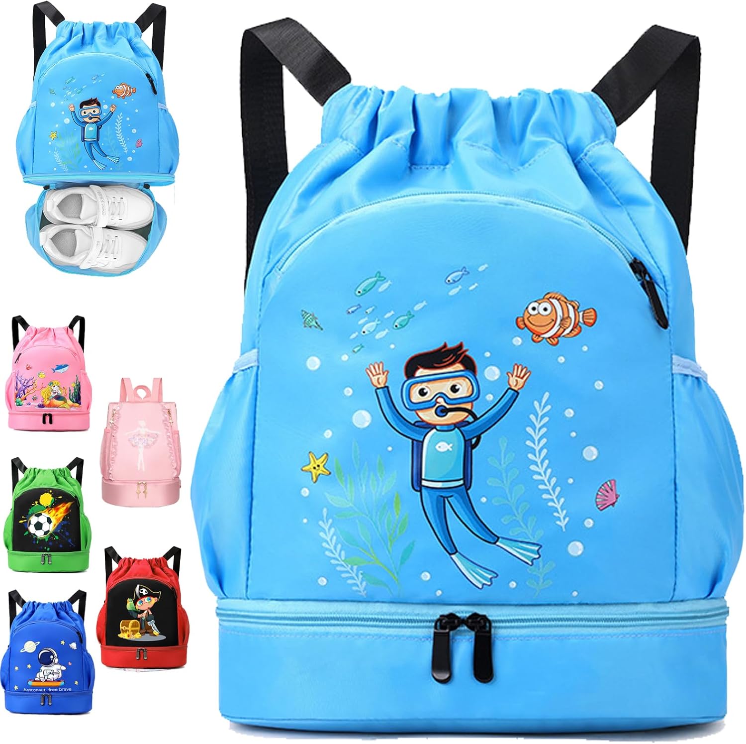 YOUYIKE Schwimmtasche Kinder - Wasserdichter Sportrucksack Mit Nassfach Und Fußball-Design