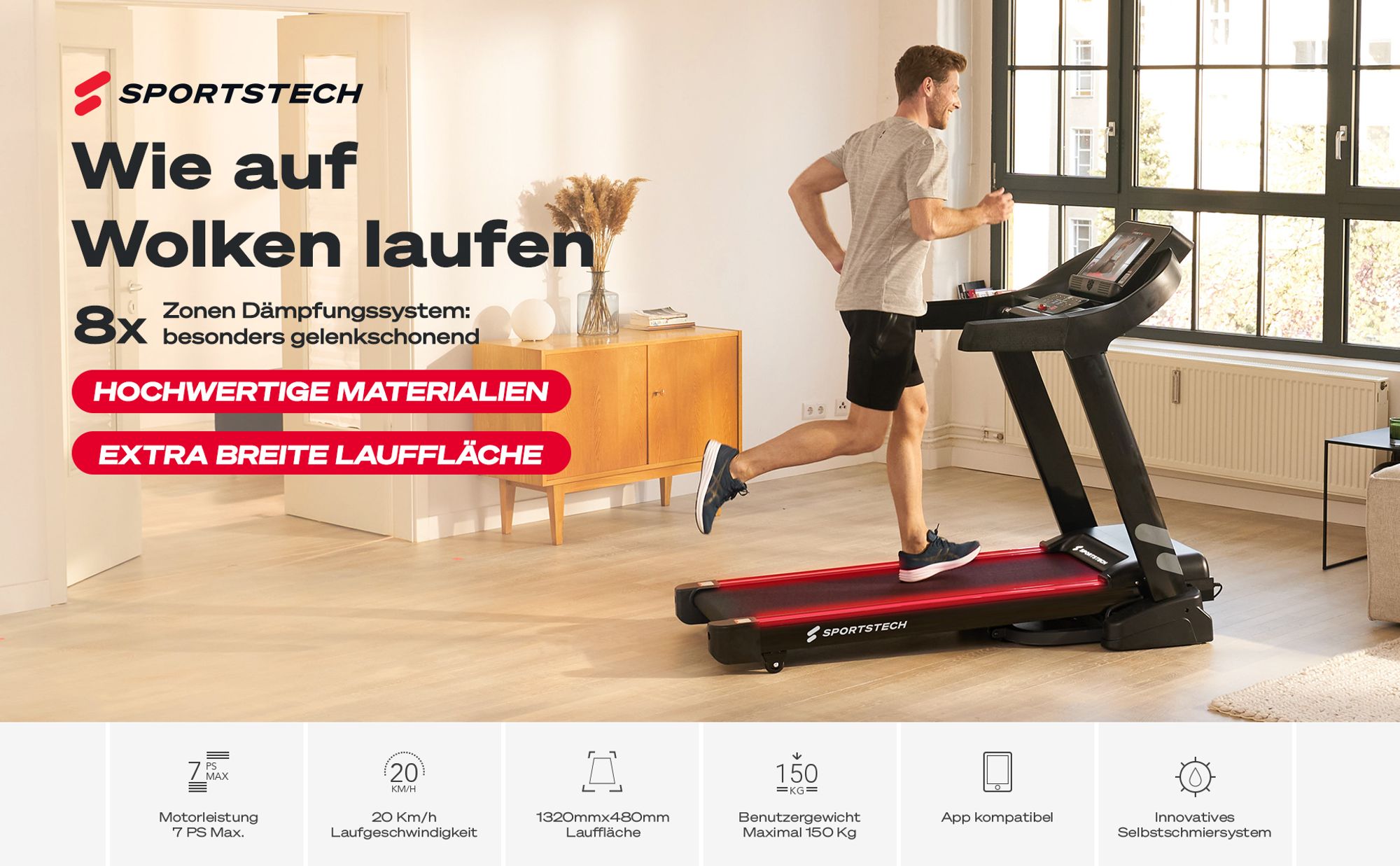 Bewegung im Homeoffice? Mit dem Sportstech sWalk Laufband kein Problem! Ultra-leise und kompakt - perfekt unter dem Schreibtisch.
