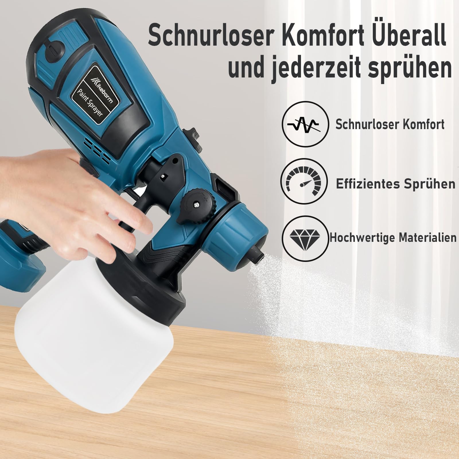Akku Farbsprühsystem 18V - Drahtlose Sprühpistole Mit 3 Düsen Und 2 Akkus