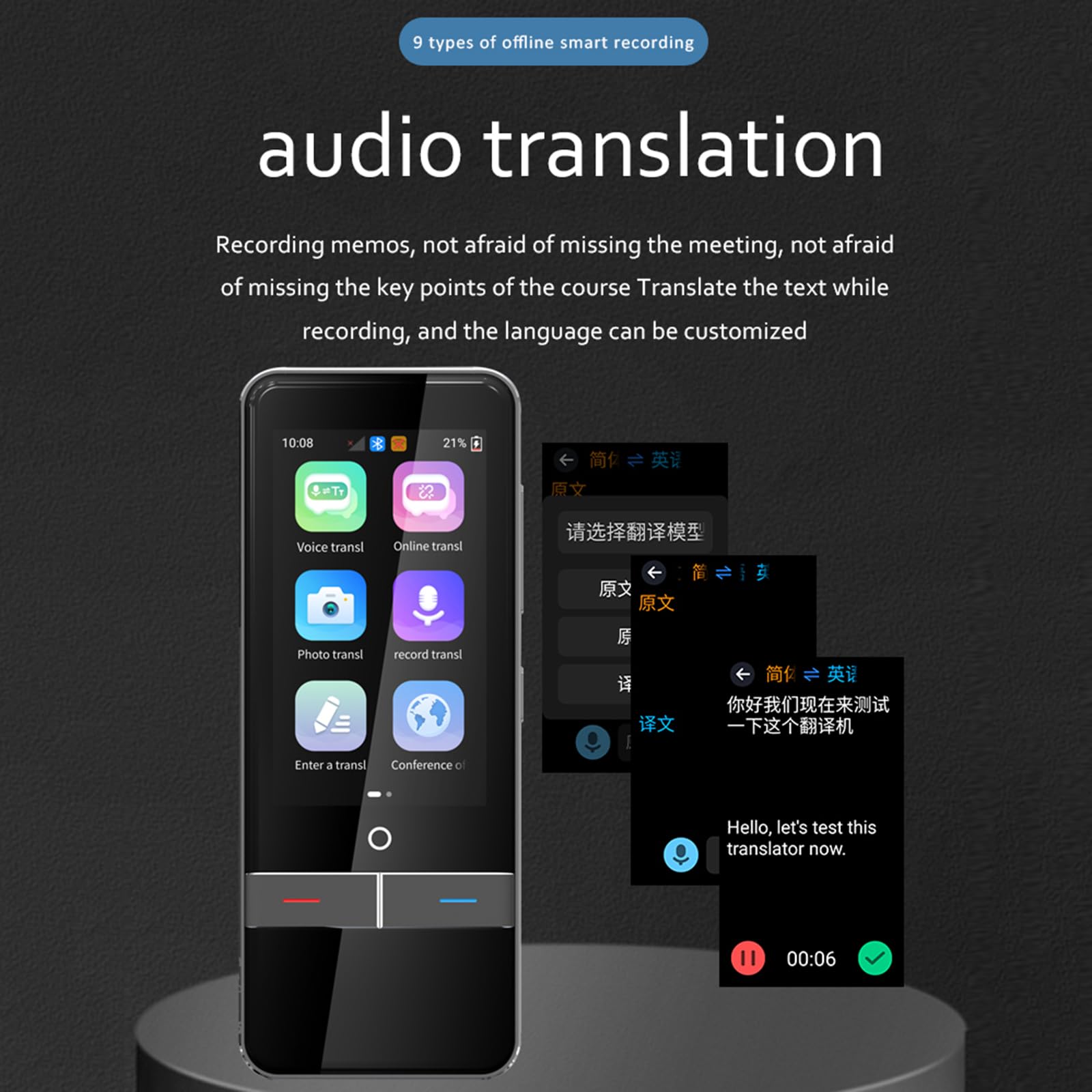 Nie mehr Sprachbarrieren! Dieser Übersetzer von unterstützt 139 Sprachen online und 14 offline - in weniger als 0,5 Sekunden. Mit 2,6-Zoll-IPS-Touchscreen, 1500mAh-Akku (8h Laufzeit) und Scan-Funktion für Texte und Handschrift. Einfach sprechen, tippen oder scannen und sofort kommt die Übersetzung. Perfekt für Reisen, Geschäftstermine oder zum Lernen. Mit WLAN, Sprachassistent und nur 240g Gewicht. Dein persönlicher Dolmetscher für unterwegs - klein, aber oho!
