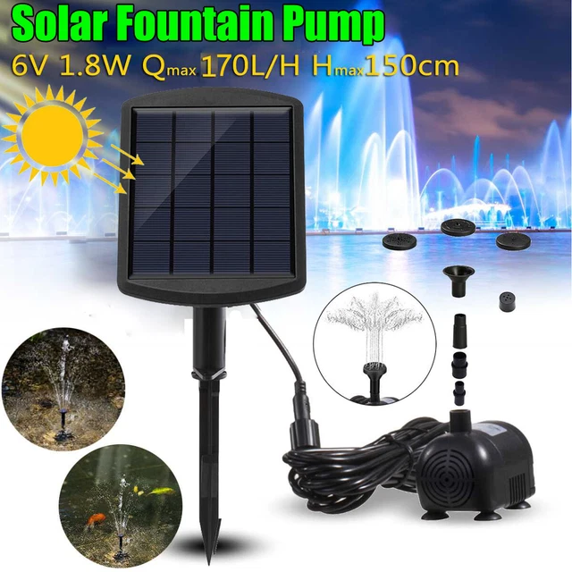 Einfach das Solarpanel in die Sonne stellen und die Pumpe ins Wasser - schon nach 3 Sekunden startet der Springbrunnen automatisch. Maximale Förderhöhe 2,5m, ideal für kleine Teiche, Vogeltränken oder dekorative Wasserspiele.