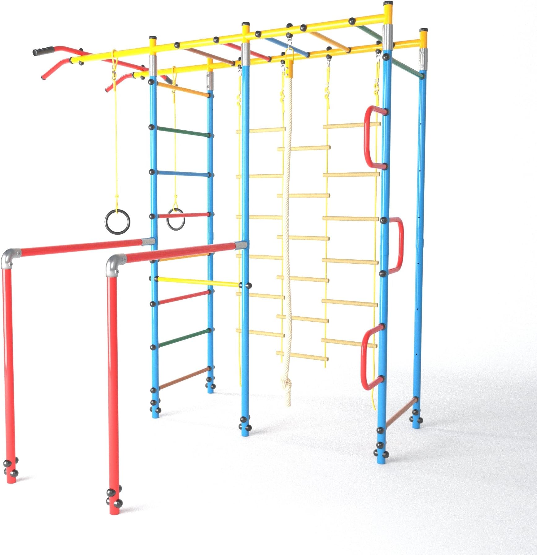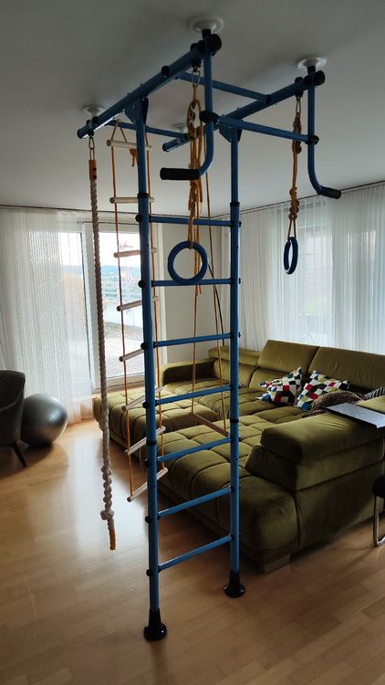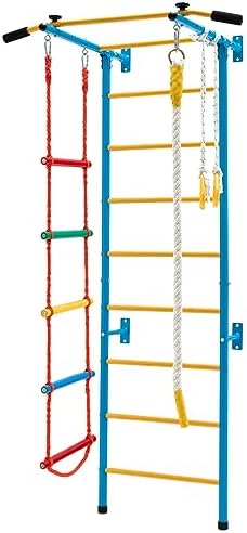 Was für ein cooles Klettergerüst für Kinderzimmer! In weiß/gelb, super stabil und sicher. Mit 41cm Sprossenbreite für sicheres Klettern. Tragkraft bis 100kg (200kg geprüft). Inklusive Trapez, Klettertau, Turnetz und 2 Turnringen - alles dabei! Einfache Wandmontage, spart Platz. Fördert Bewegung, Koordination und macht einfach Spaß. Perfekt für Regentage oder immer wenn's drinnen spannend sein soll. Einfach ein super Spielgerät für aktive Kids!