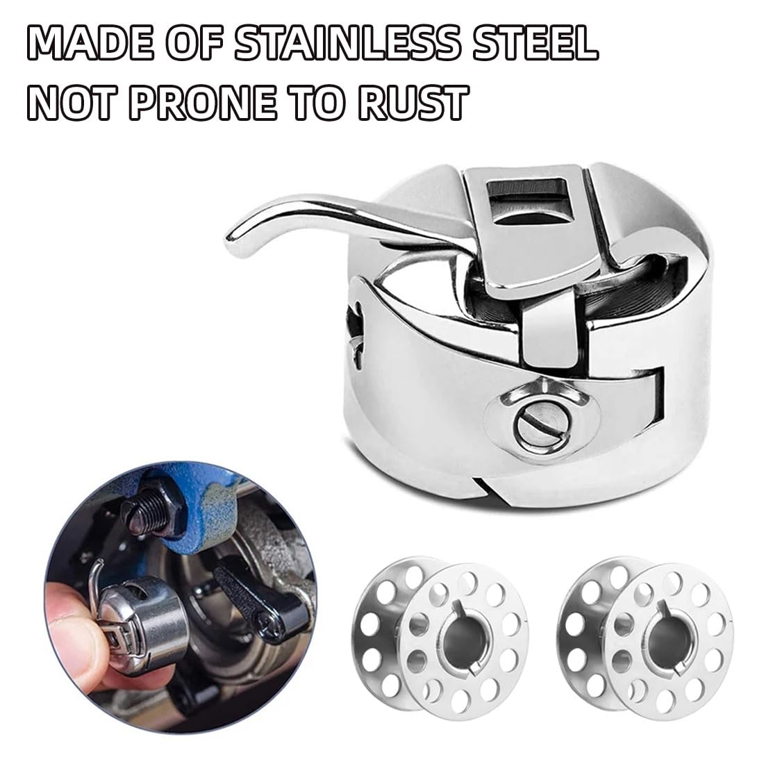 Die Spulen sind aus robustem Edelstahl - rostfrei und extrem langlebig. Passen perfekt für die meisten Frontlader-Nähmaschinen. Mit 2,3cm Durchmesser und 1,5cm Höhe sind sie ideal für Haushalts- und Industriemaschinen.