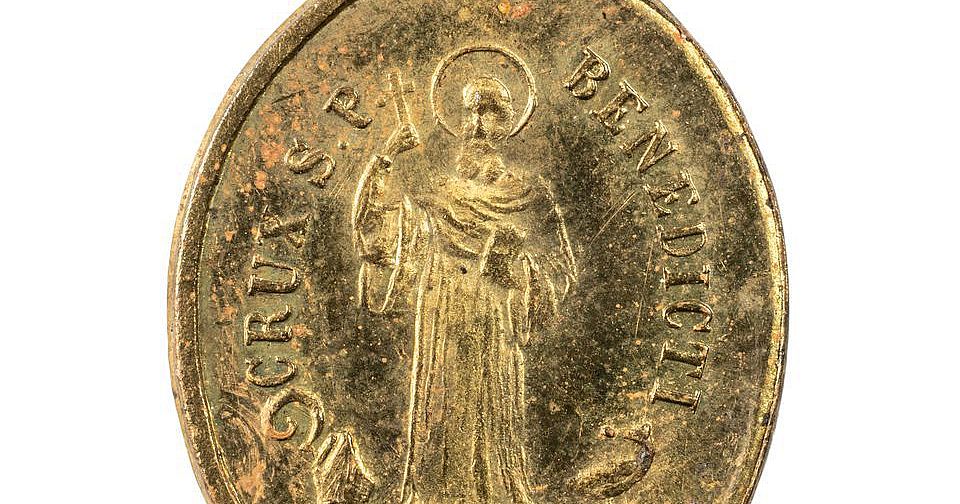 St. Benedikt Medaillen Set - Katholischer Türhänger Mit Gebetskarten Für Haussegen