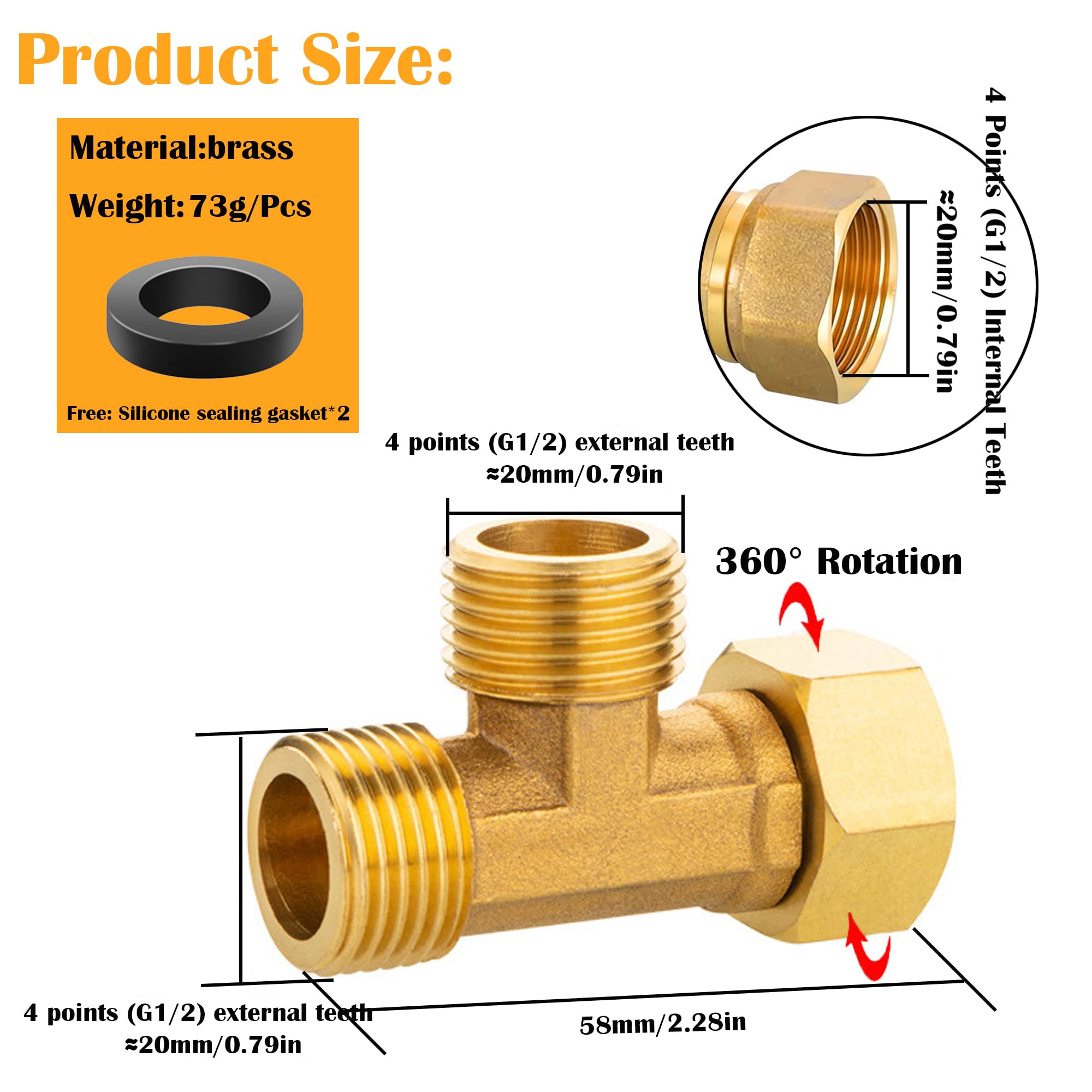 Messing T-Stück 1/2" - 3-Wege Verschraubung Für Sanitär