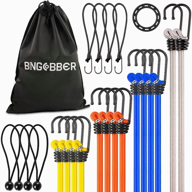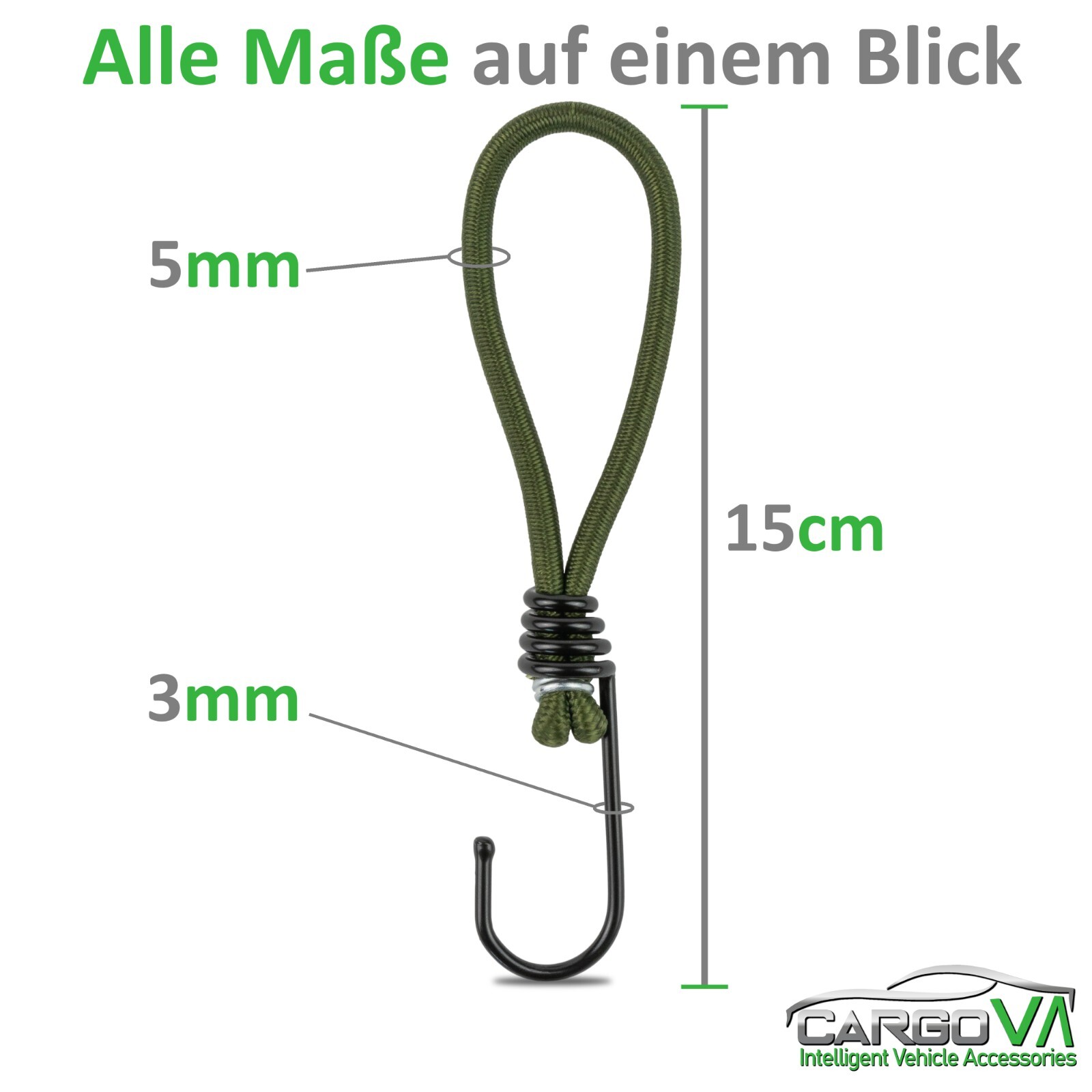 Die praktischen Alleskönner für drinnen und draußen! Dieses Set mit 20 Spanngummis à 10 cm Länge von Moinkerin löst so viele Probleme, dass du dich fragst, wie du je ohne sie ausgekommen bist.\n\nMit einer 300D Polyester-Ummantelung sind diese Gummis absolut wasserdicht und UV-beständig. Der Naturlatex-Kern im Inneren dehnt sich bis auf das Doppelte seiner Länge aus - das sind satte 200% Dehnkraft!\n\nDie abgerundeten Kunststoffhaken schonen empfindliche Oberflächen wie Planen, Zelte oder Autolacke. Keine Kratzer, keine Beschädigungen - nur sicherer Halt. Und das Beste: Du brauchst kein Werkzeug, die Haken lassen sich einfach einklicken.\n\nFür Camping absolut unverzichtbar: Spanne dein Zelt fest, sichere die Plane über dem Gepäck oder befestige Ausrüstung am Fahrrad. Aber auch zu Hause super praktisch - als Kabelorganisator unter dem Schreibtisch, zum Fixieren von wackeligen Möbeln oder für kreative DIY-Projekte.\n\nKombiniere mehrere Bänder miteinander, um jede gewünschte Länge zu erreichen. Zwei 10cm-Bänder und ein 15cm-Band ergeben schon 35 cm Spannweite - deiner Kreativität sind keine Grenzen gesetzt!\n\nTipp: Lagere die Bänder nach Gebrauch entspannt, nicht dauerhaft gedehnt. So bleiben sie jahrelang elastisch und einsatzbereit.\n\nMit 20 Stück im Set hast du immer genug Vorrat für mehrere Projekte gleichzeitig. Ob im Garten, in der Werkstatt, beim Camping oder im Haushalt - diese Spanngummis werden zu deinen neuen Lieblingshelfern!\n\nKlein, aber oho - hol dir dieses Set und entdecke, wie viel einfacher viele Aufgaben plötzlich werden!
