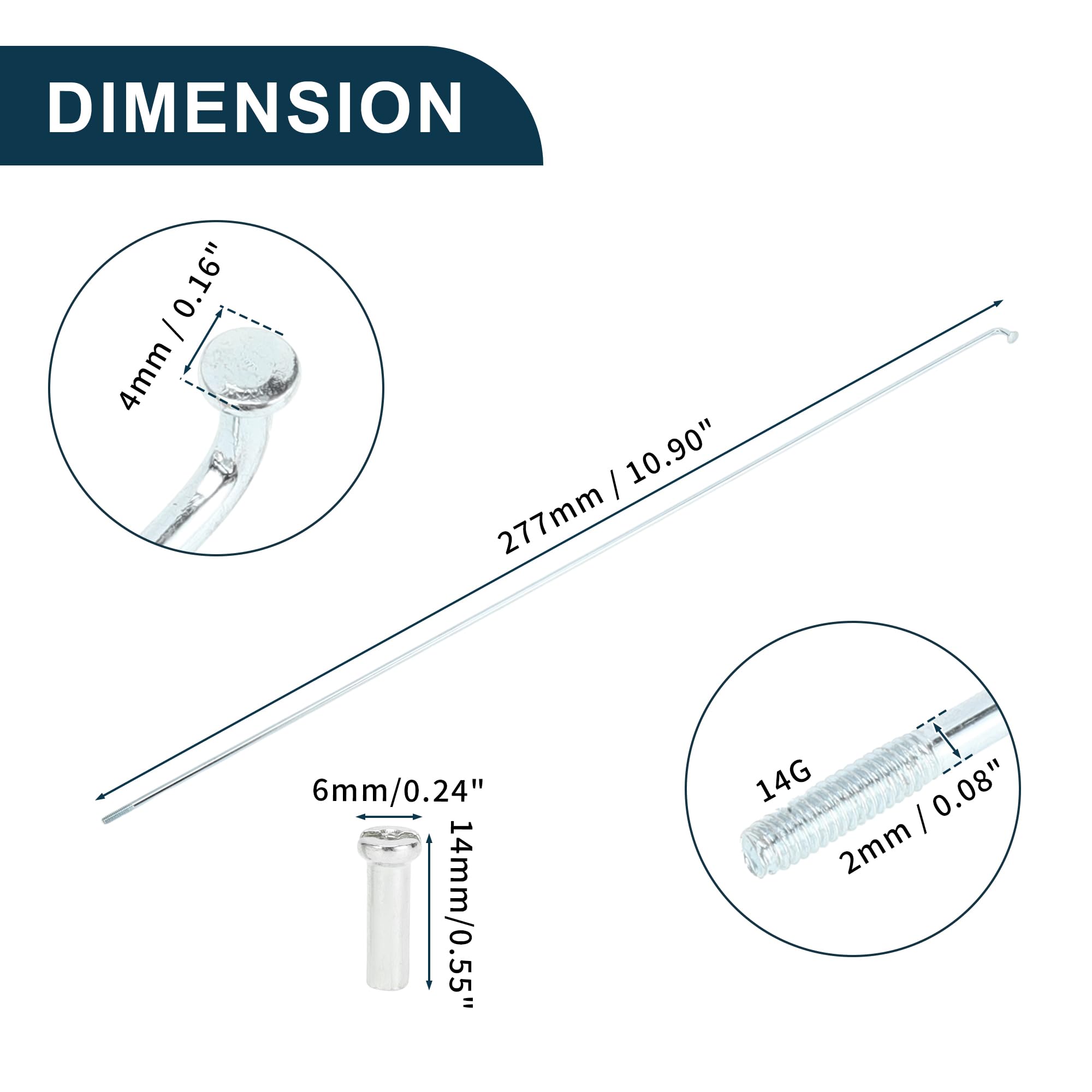 TUCKBOLD Fahrradspeichen Set - 36 Stück 14G 287mm Verzinkte Speichen Mit Nippeln