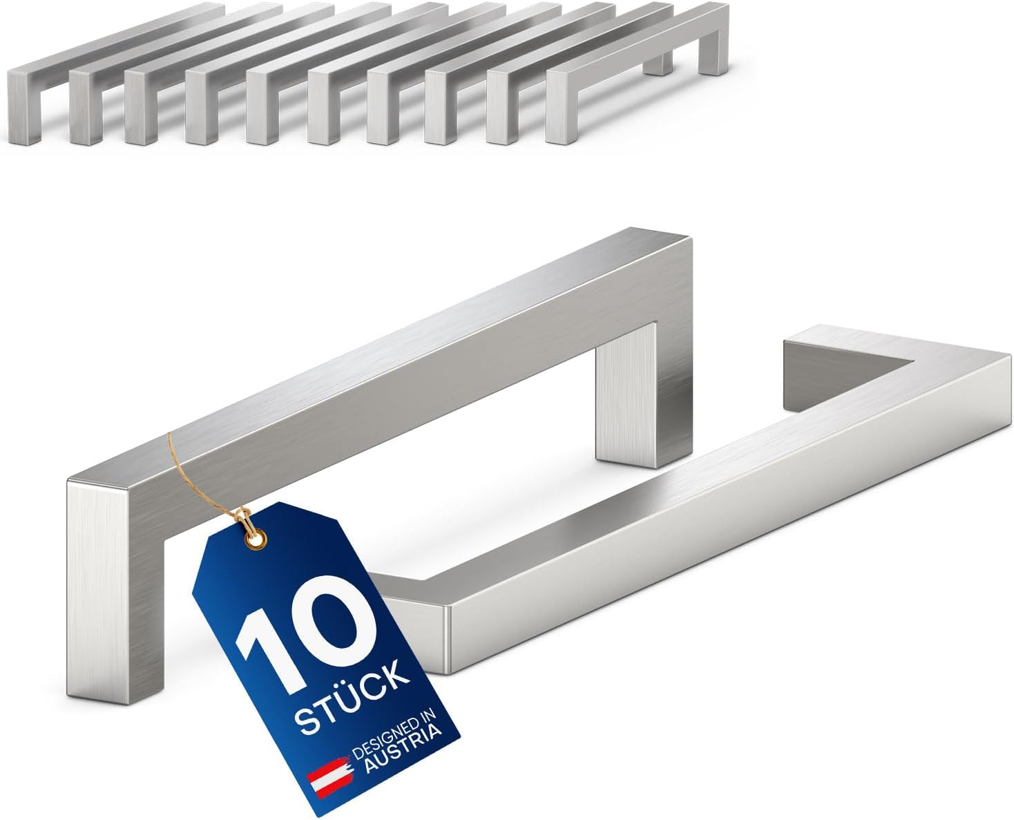LIVING-TEC Schrankgriffe 10 Stück 160mm Silber - Edelstahl Griffe Für Küche & Möbel