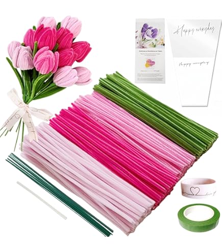 Pfeifenreiniger Blumen Set 315 Stück - 3 Farben Mit Zubehör Zum Basteln