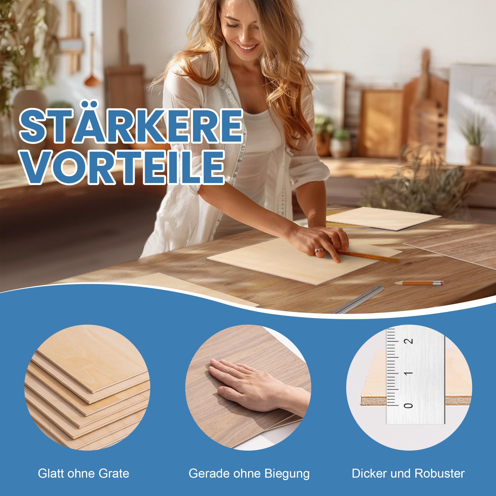 Kreativität pur mit diesen edlen Sperrholzplatten! Aus natürlichem Walnuss-Furnier - jede Platte 420 x 300 mm groß und 3 mm dick. Superglatte Oberfläche ohne Grate - perfekt für Modellbau, Brandmalerei oder andere Bastelprojekte. Mit gleichmäßiger Maserung - einfach schön! Leicht zu schneiden, sogar mit Cuttermesser. Das 6er-Set bietet genug Material für viele Projekte. Leichter Holzgeruch - ganz natürlich! Tipp: Trocken lagern, dann verzieht sich nichts. Perfekt für Hobby-Bastler, Modellbauer oder alle, die gerne mit Holz arbeiten. Deine Kreativität kennt keine Grenzen!