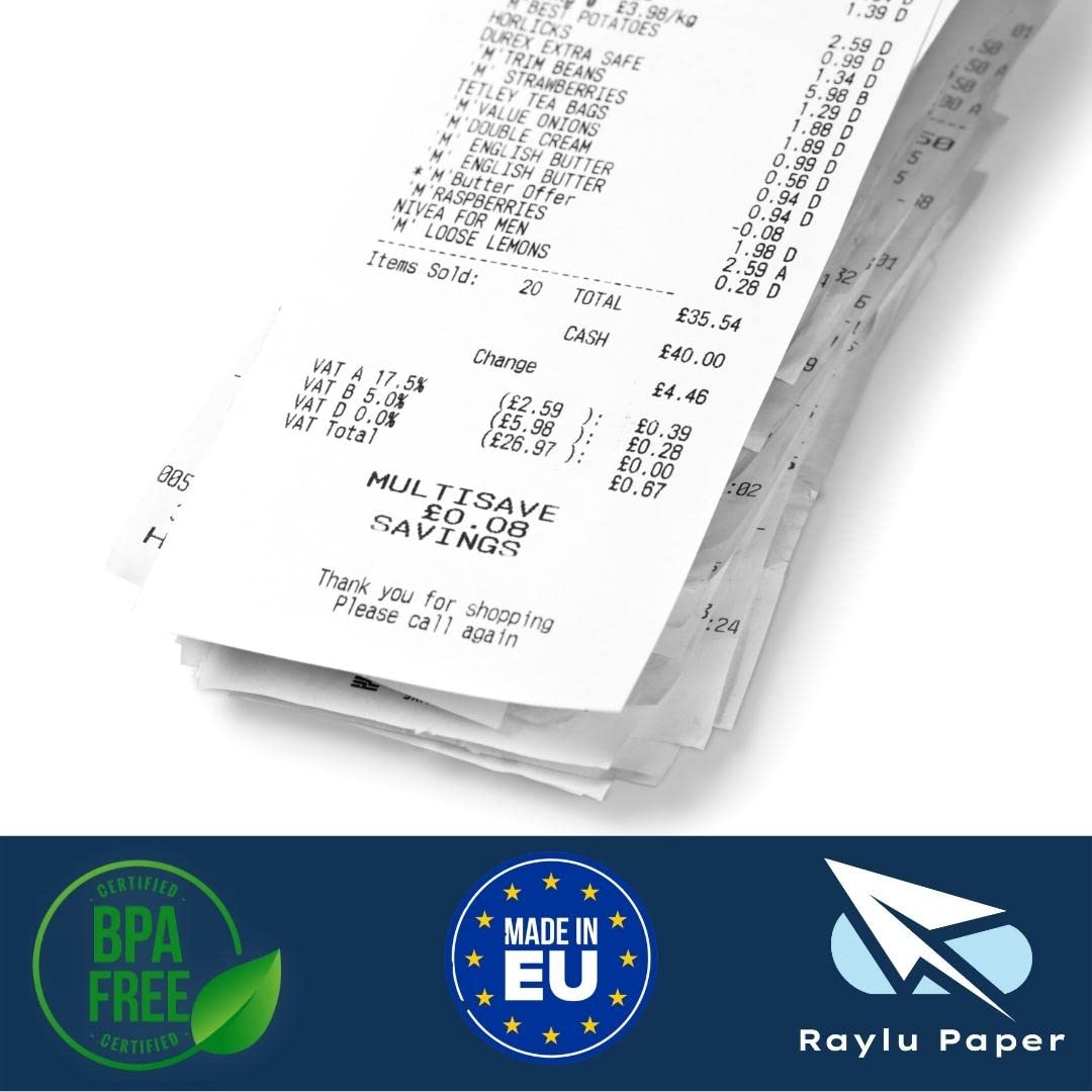 Raylu Paper Thermopapier Rollen 8 Stück - 80x80mm BPA-frei Für Kassen & Drucker