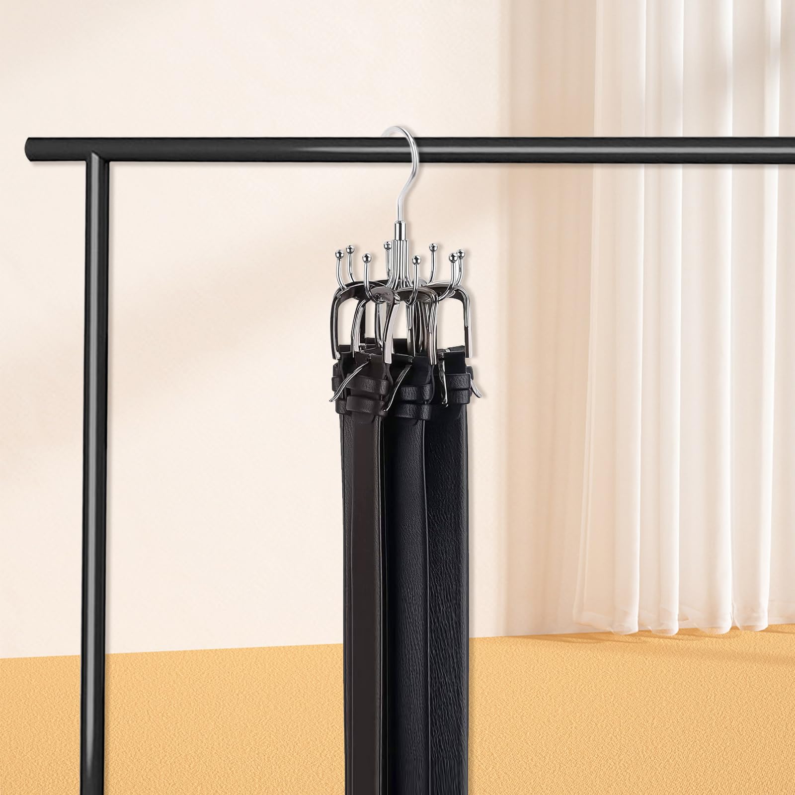 Endlich Ordnung im Schrank! Dieser geniale Gürtel- und Krawattenhalter bringt System in deine Accessoires. Mit 20 '-'-förmigen Haken für bis zu 60 Krawatten und 14 'U'-förmigen Haken für bis zu 42 Gürtel. Aus massivem Holz gefertigt - super stabil und langlebig. Die Haken sind 360° drehbar und rutschfest, damit nichts herunterfällt. Klappbare Design spart Platz wenn nicht in Benutzung. Perfekt für Gürtel, Krawatten, Schals, Tanktops und mehr. Einfach an der Kleiderstange aufhängen und sofort mehr Ordnung im Schrank. Im 2er-Set für doppelte Kapazität!