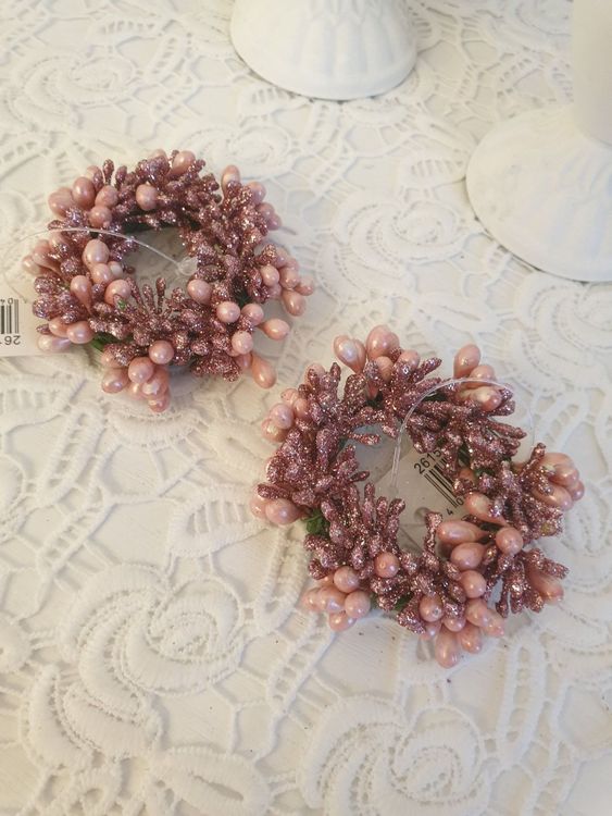 Herbstliche Kerzenringe - 2 Stück Burgunderrot Mit Beerendekor